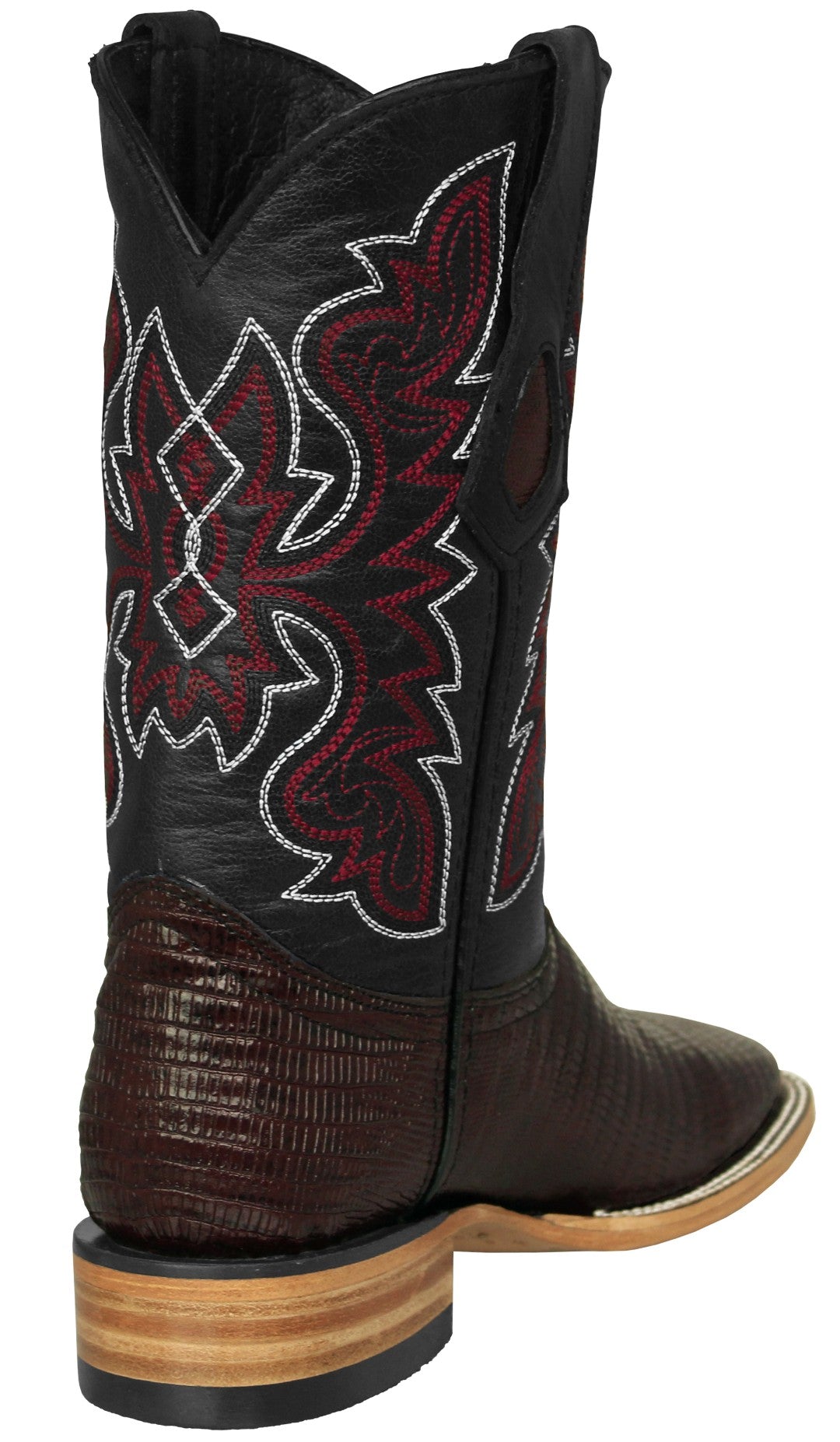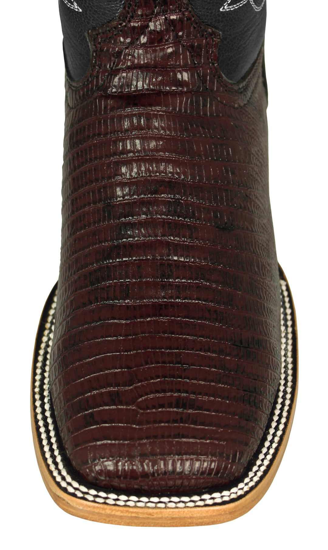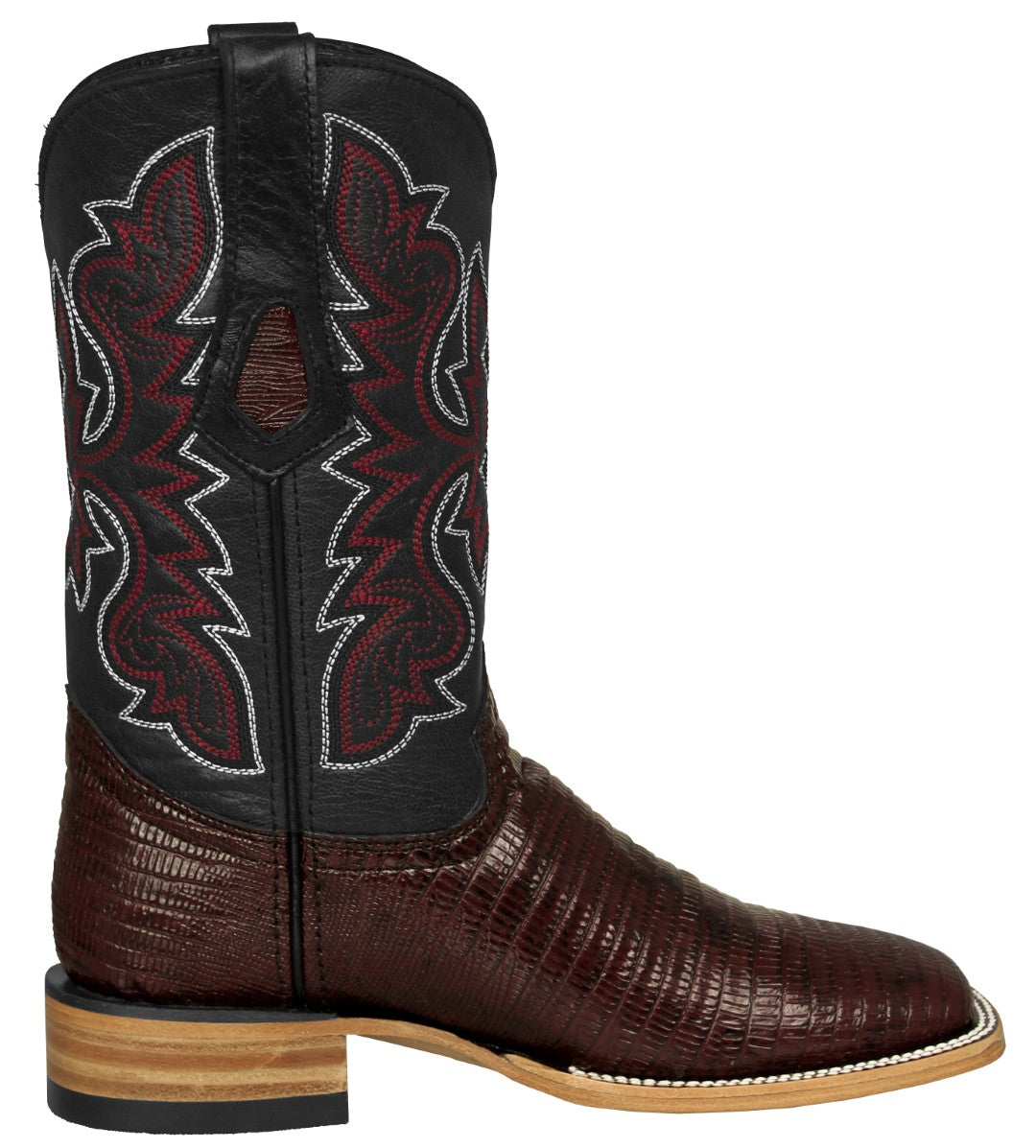 Mens Black Cherry Cowboy Boots Teju Lizard Leather - Square Toe