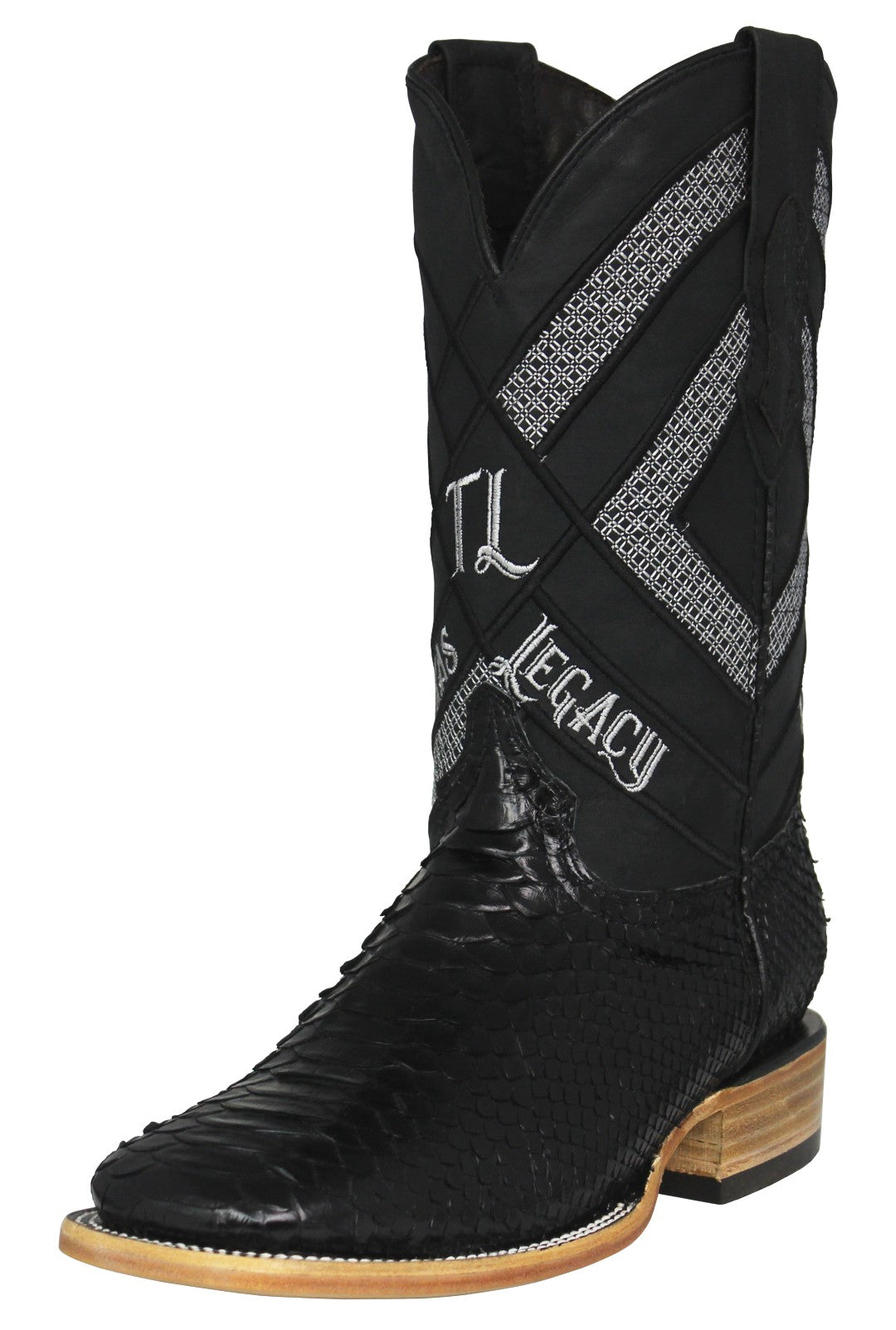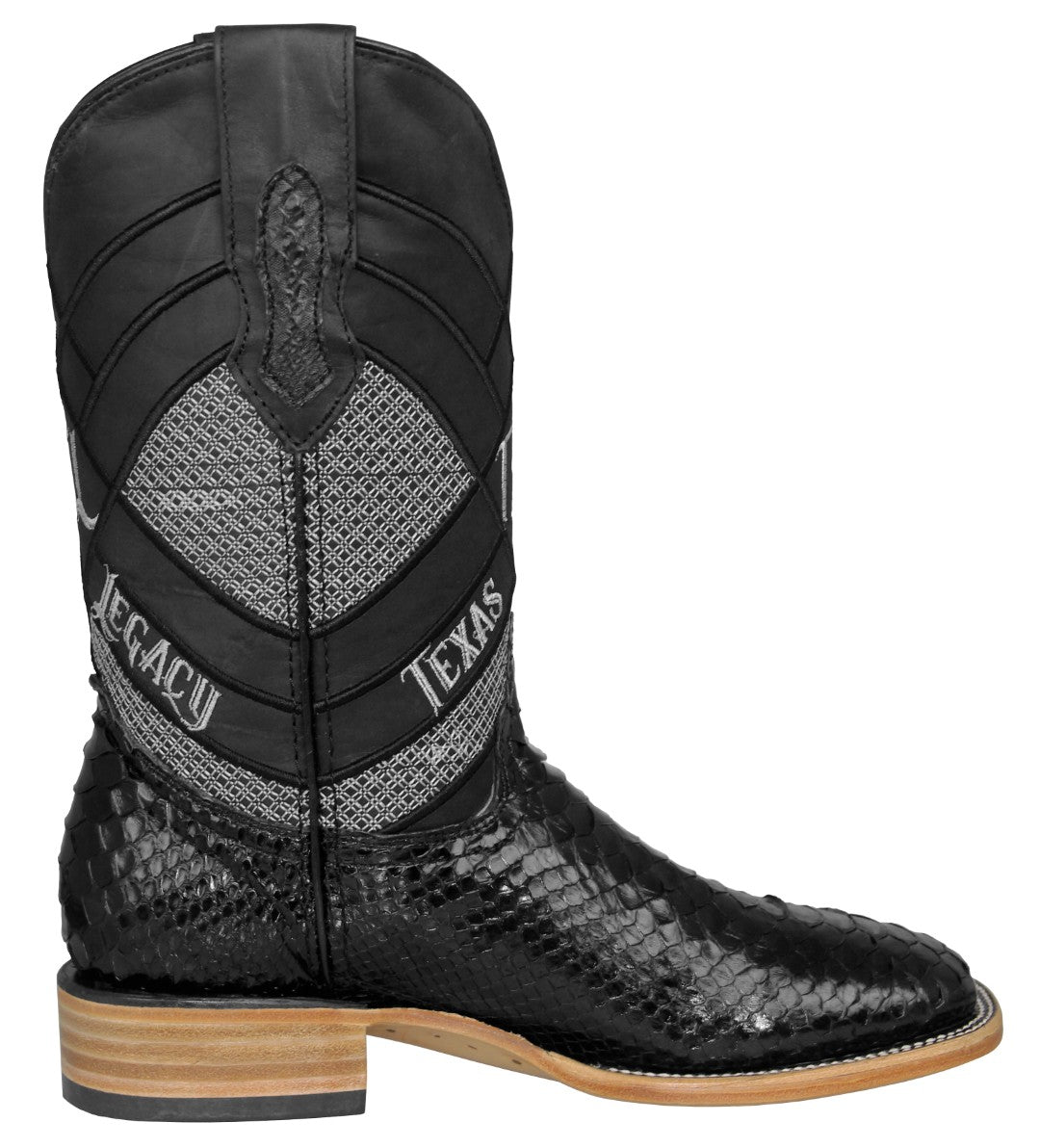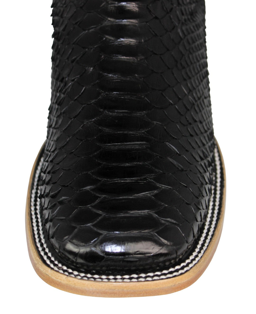 Mens Black Cowboy Boots Python Skin Leather - Square Toe