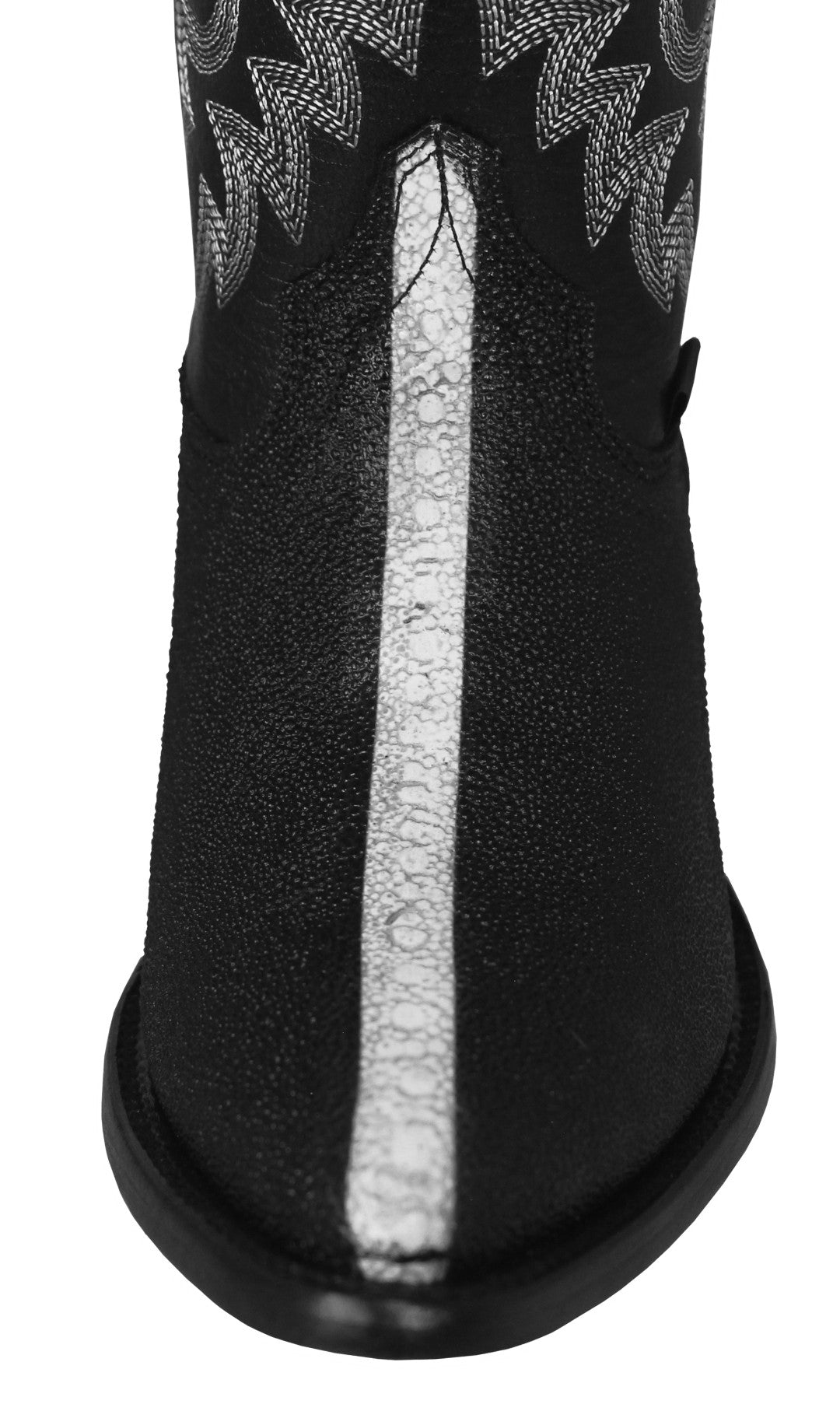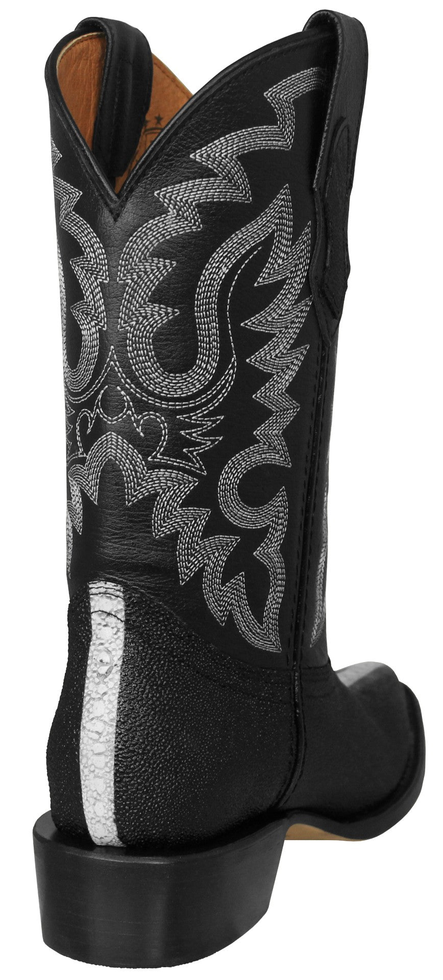 Mens Black Cowboy Boots Stingray Row Stone Print - J Toe