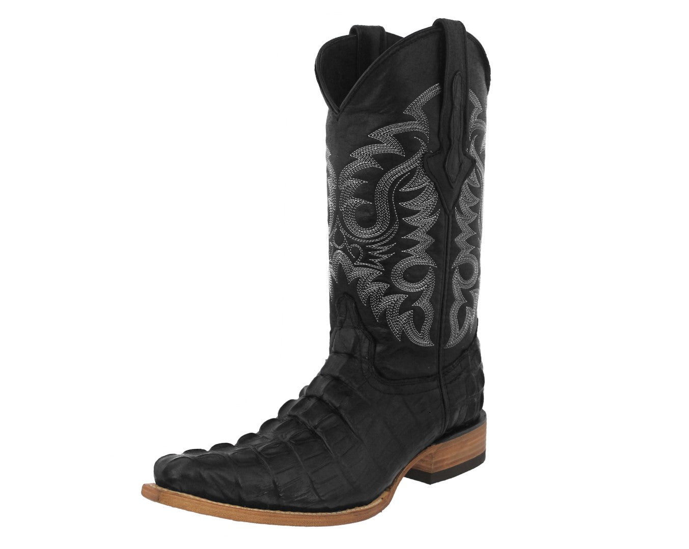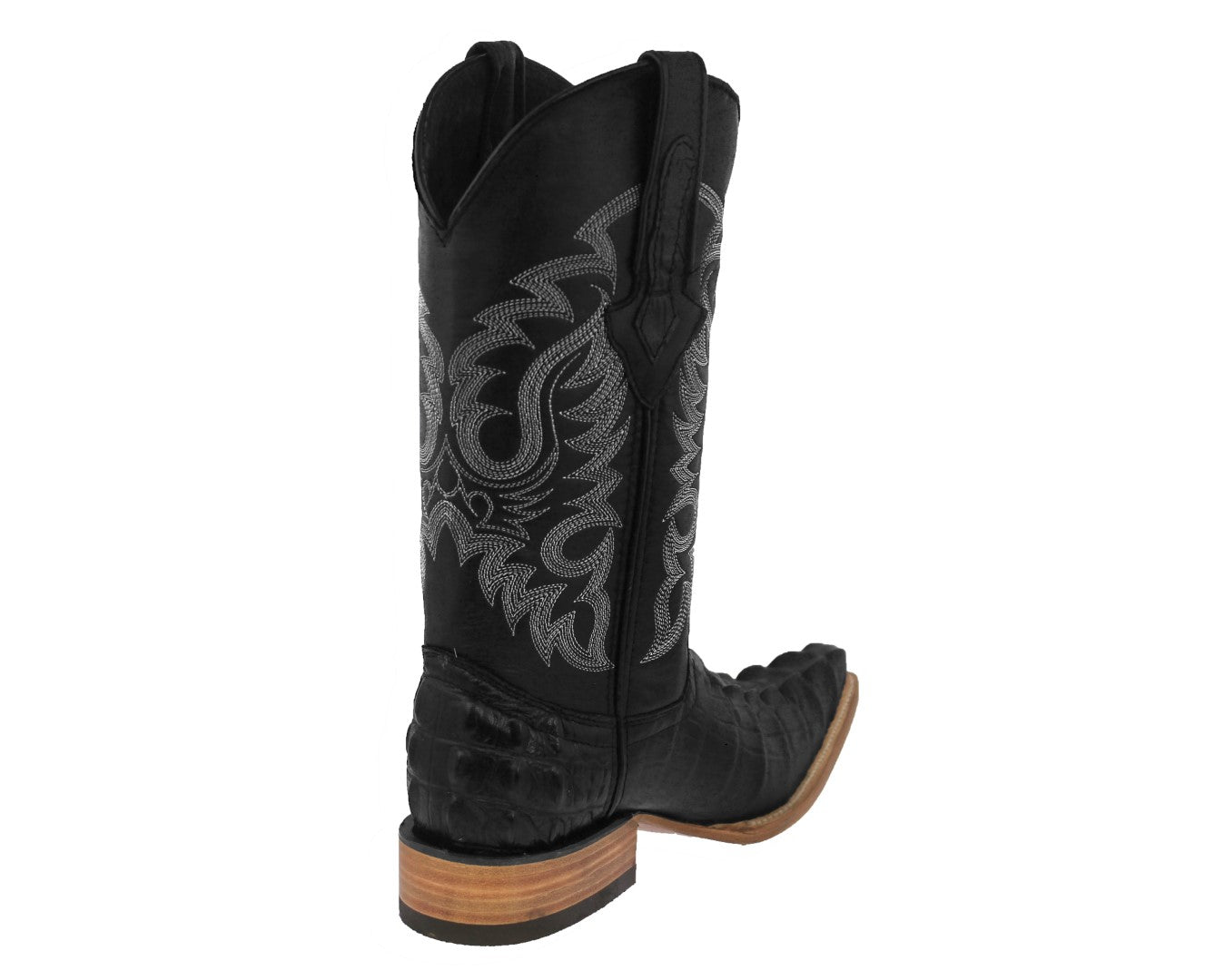 Mens Black Crocodile Tail Print Leather Cowboy Boots - 3X Toe