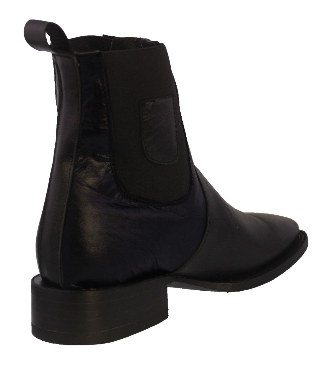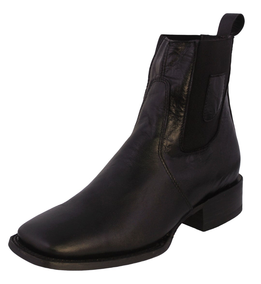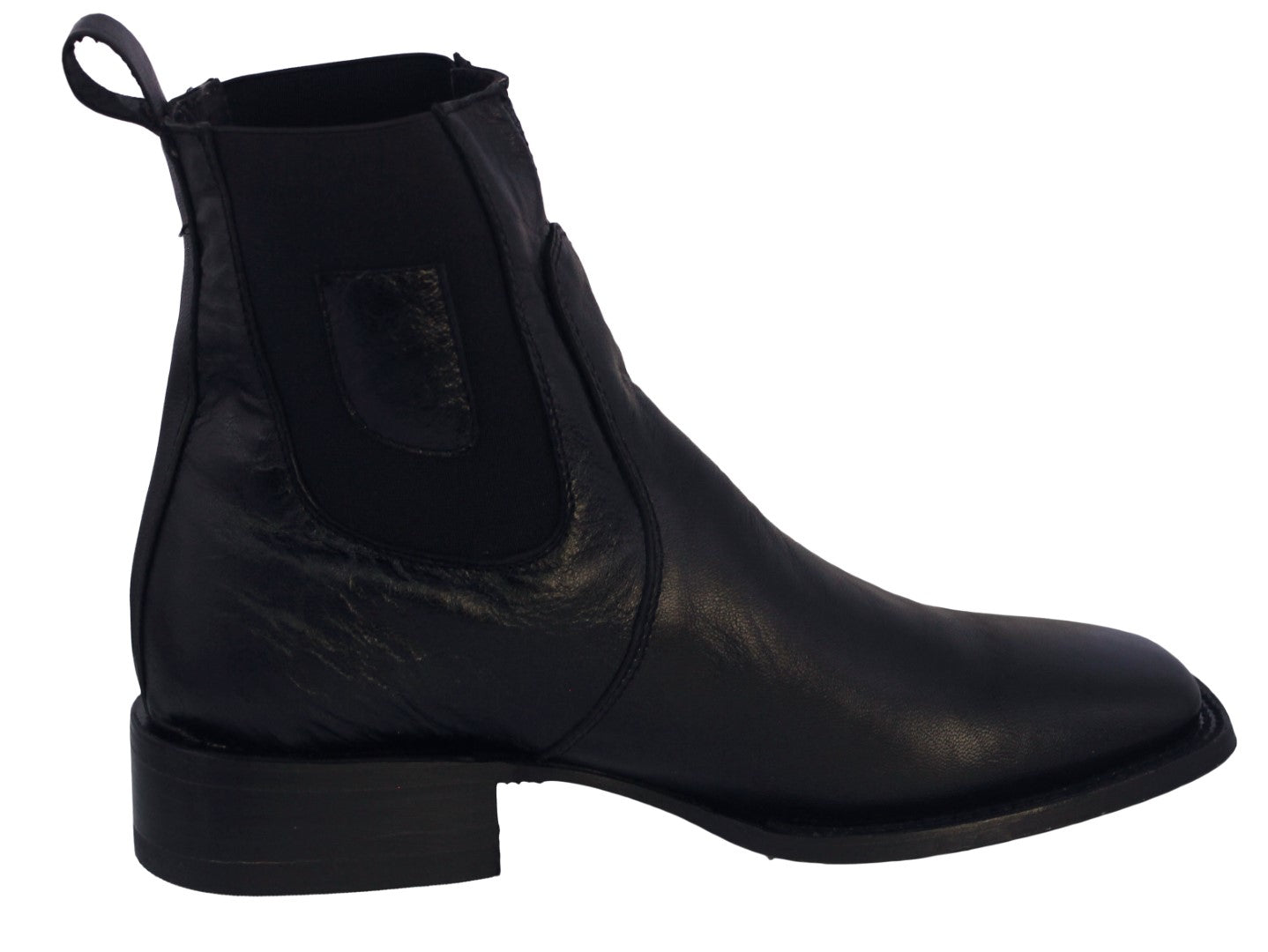 Mens Black Leather Chelsea Ankle Boots Western Dress - Square Toe