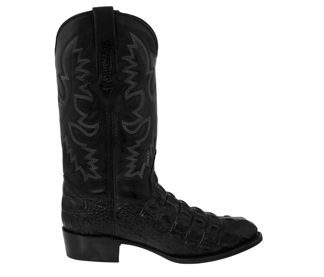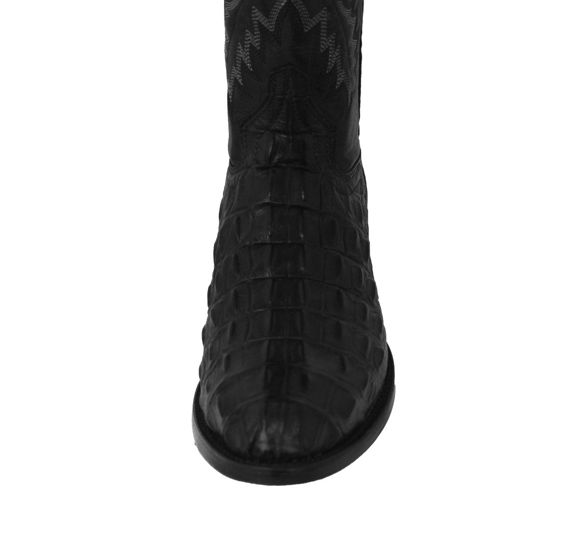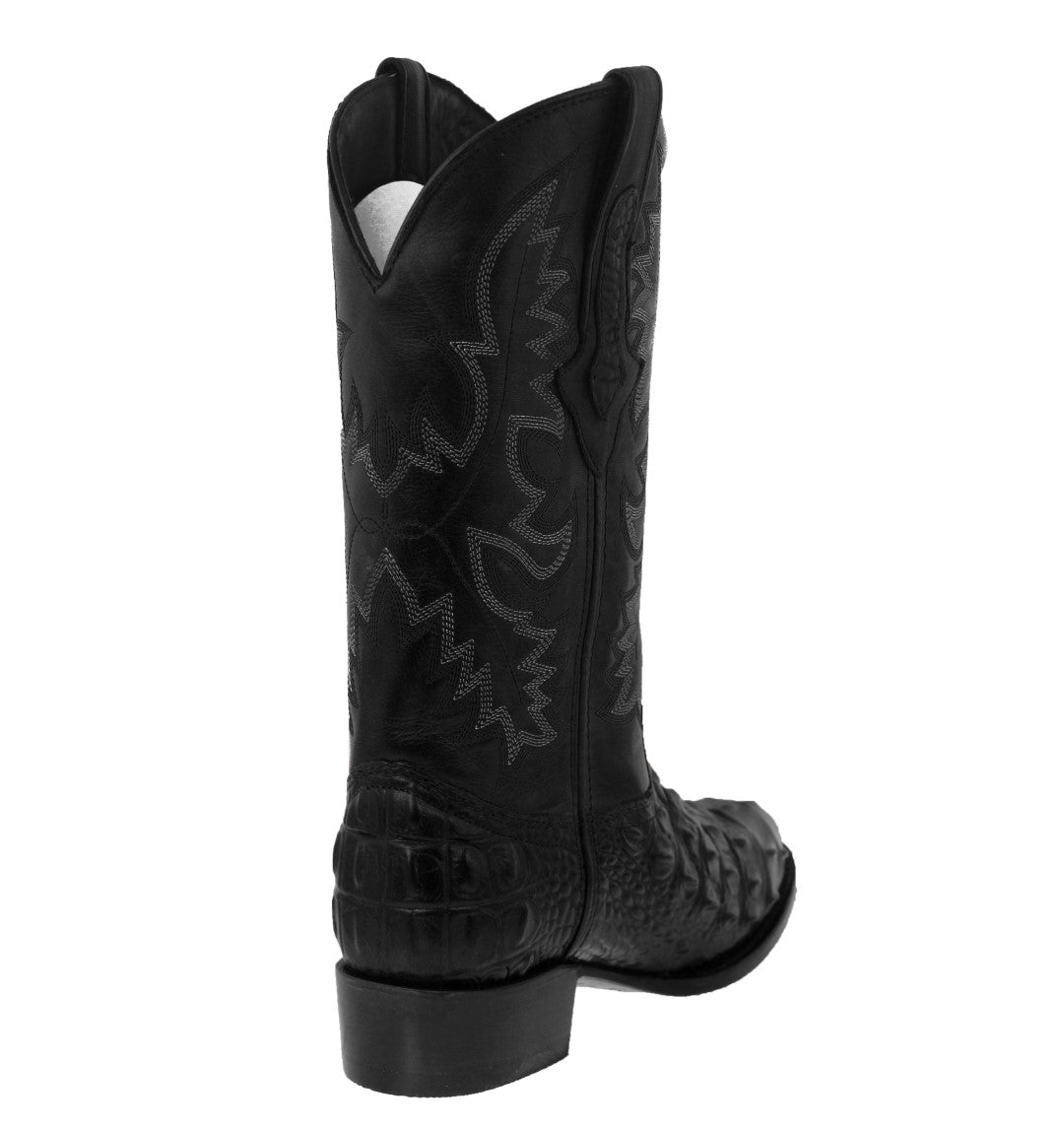 Mens Black Leather Cowboy Boots Alligator Back Print - Round Toe