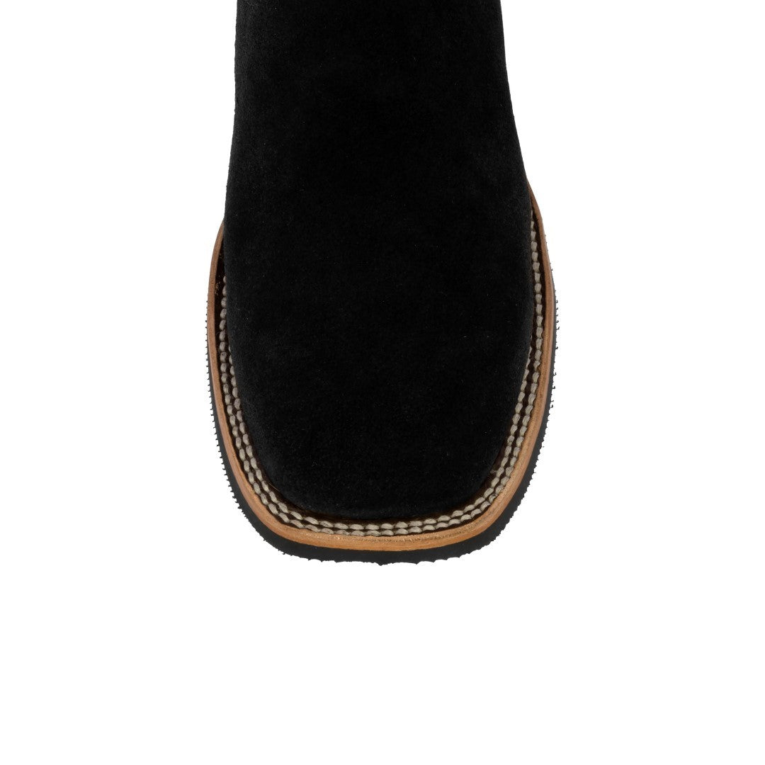 Mens Black Western Cowboy Boots Nubuck Leather - Square Toe
