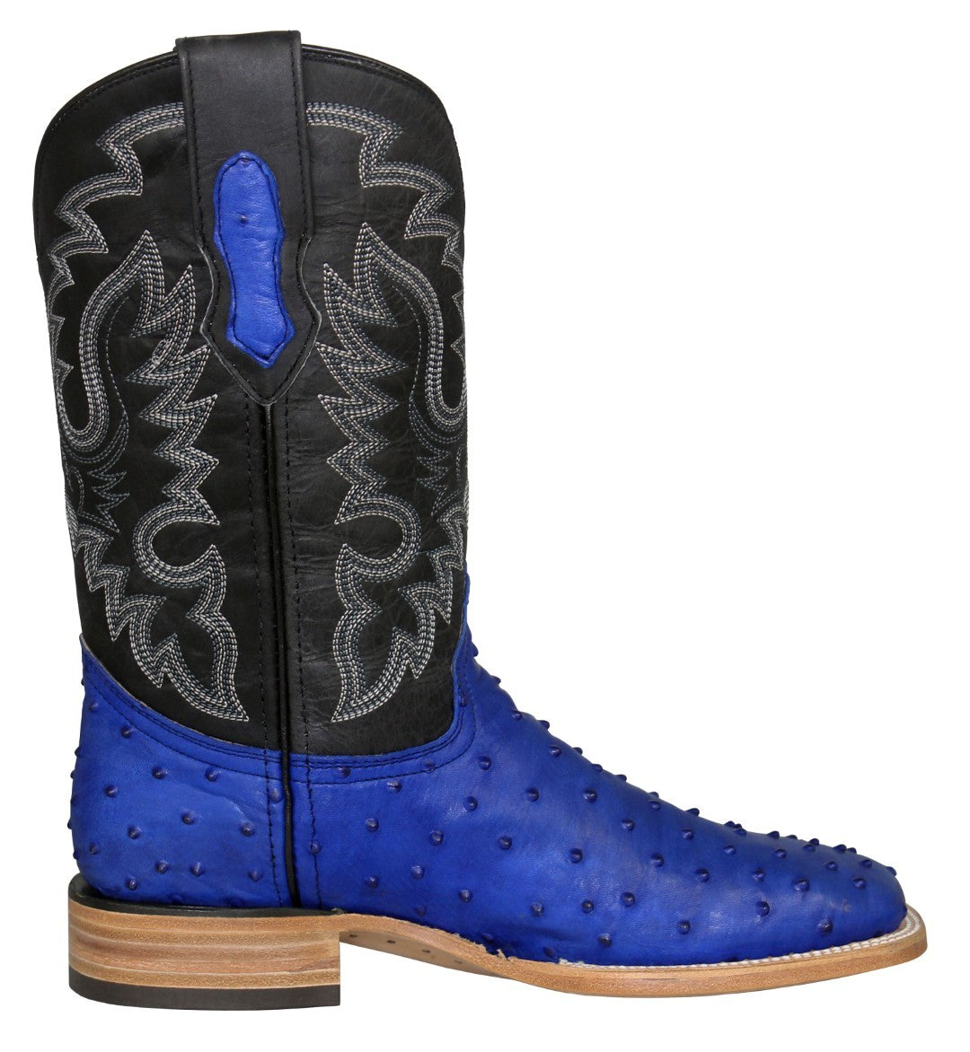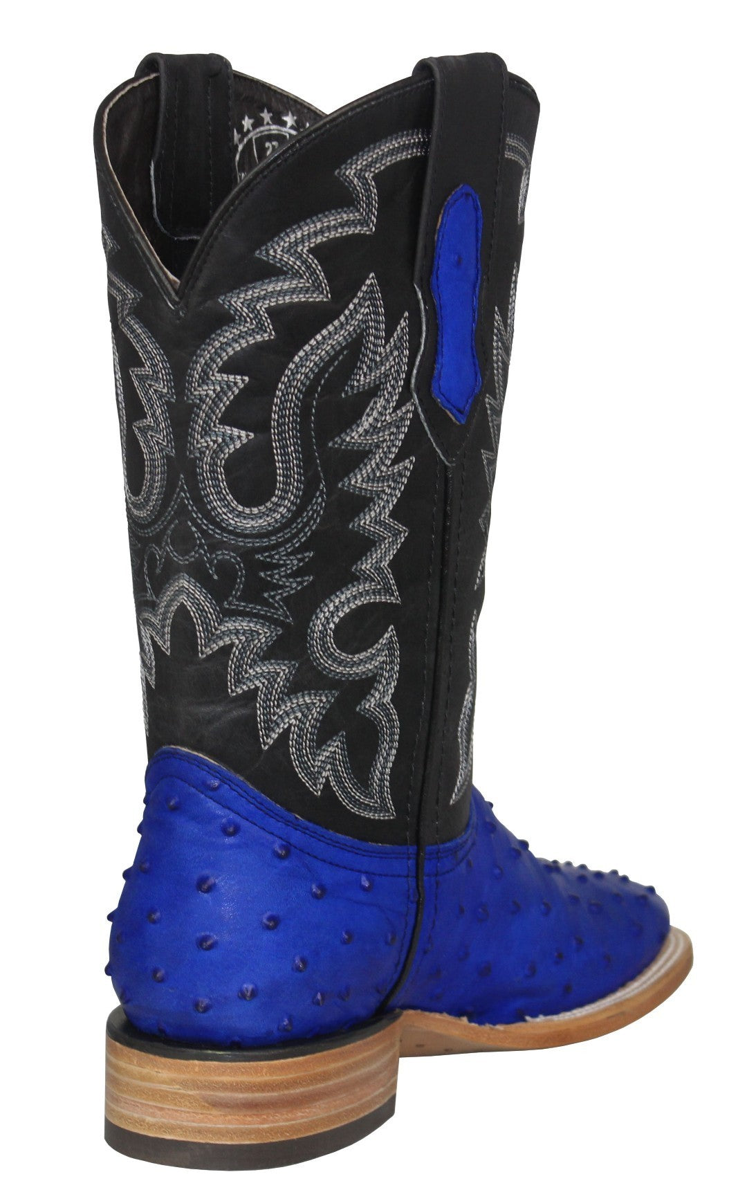 Mens Blue Cowboy Boots Ostrich Quill Print Leather - Square Toe