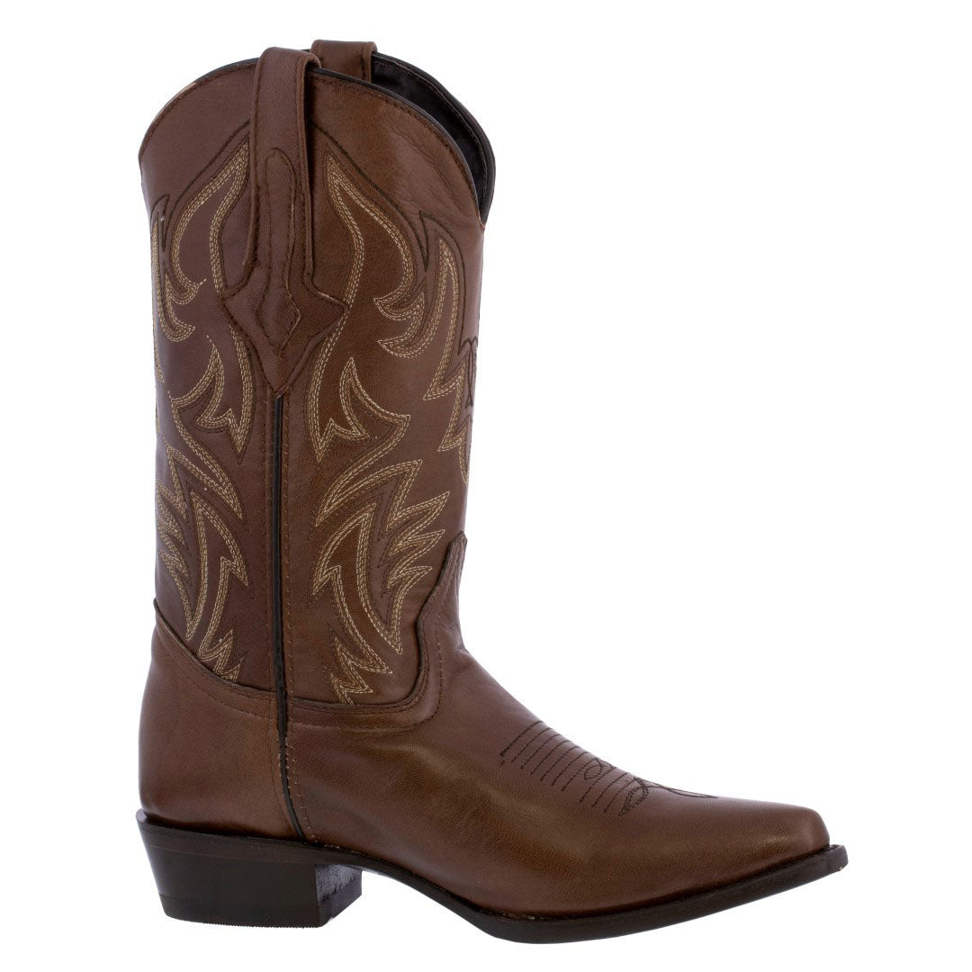 Mens Brown Cowboy Boots Western Wear Solid Leather J Toe