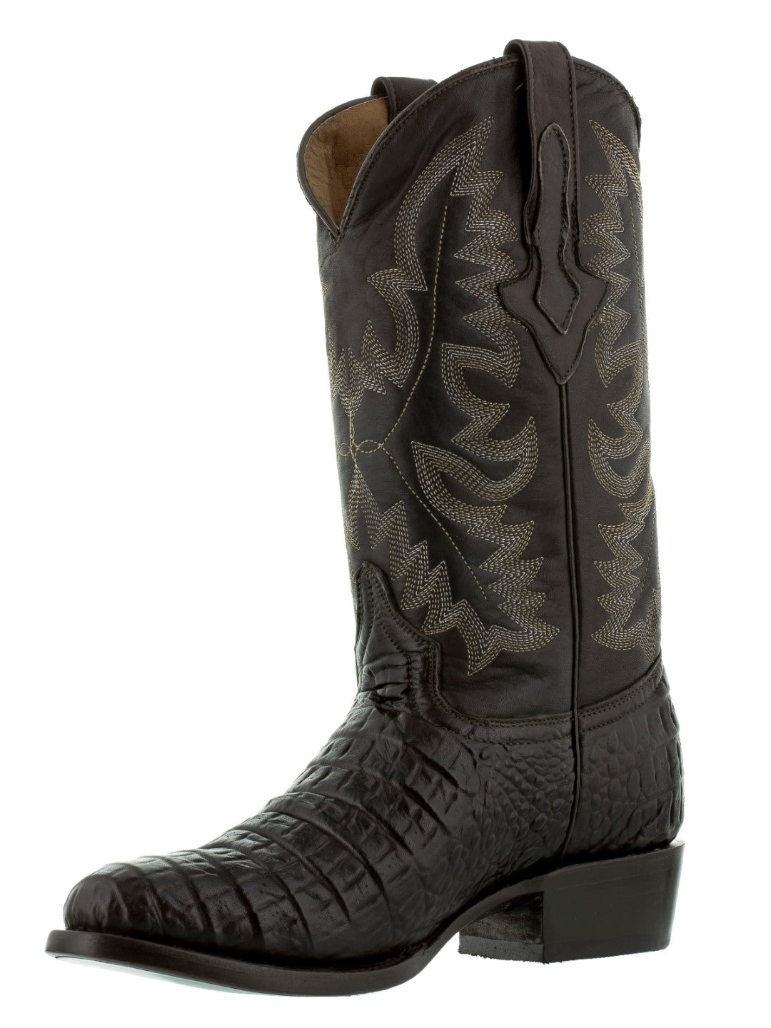 Men's Brown Genuine Leather Exotic Crocodile Alligator Belly Cowboy Boots Round