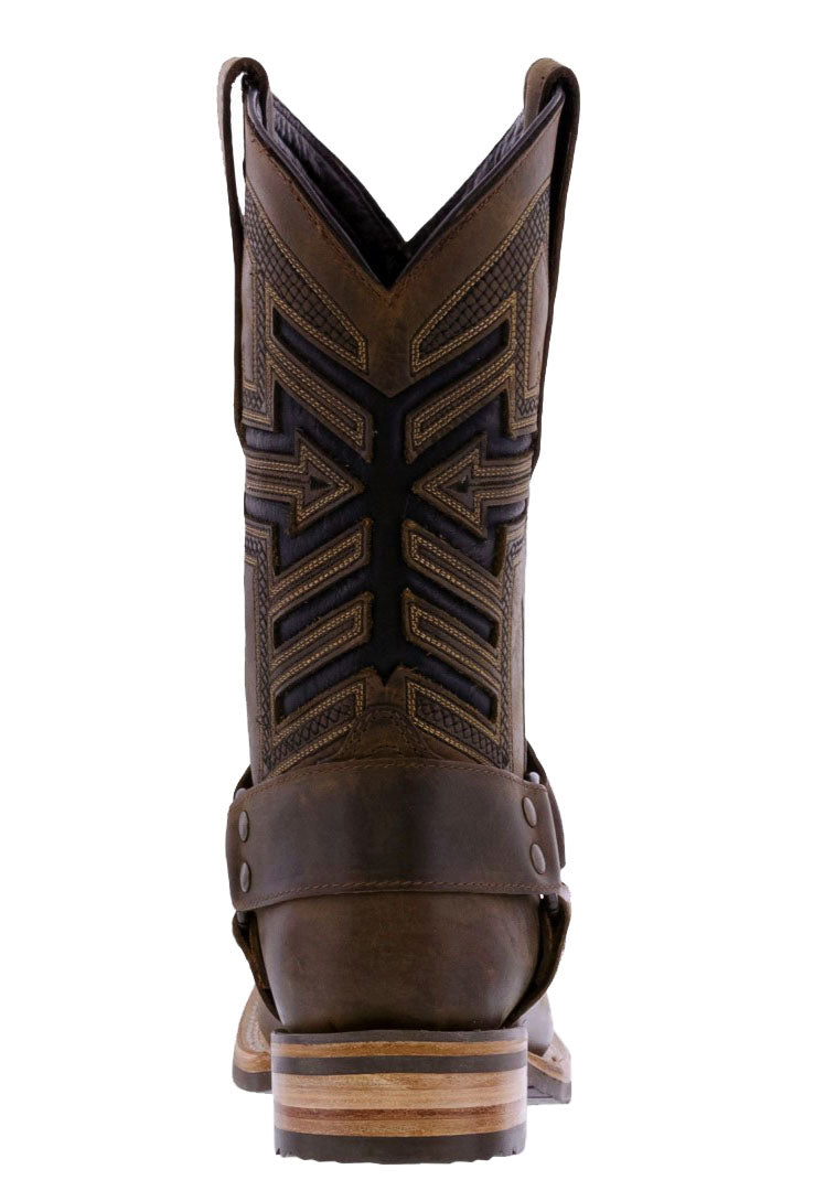 Mens Brown Motorcycle Leather Boots Harness - Square Toe