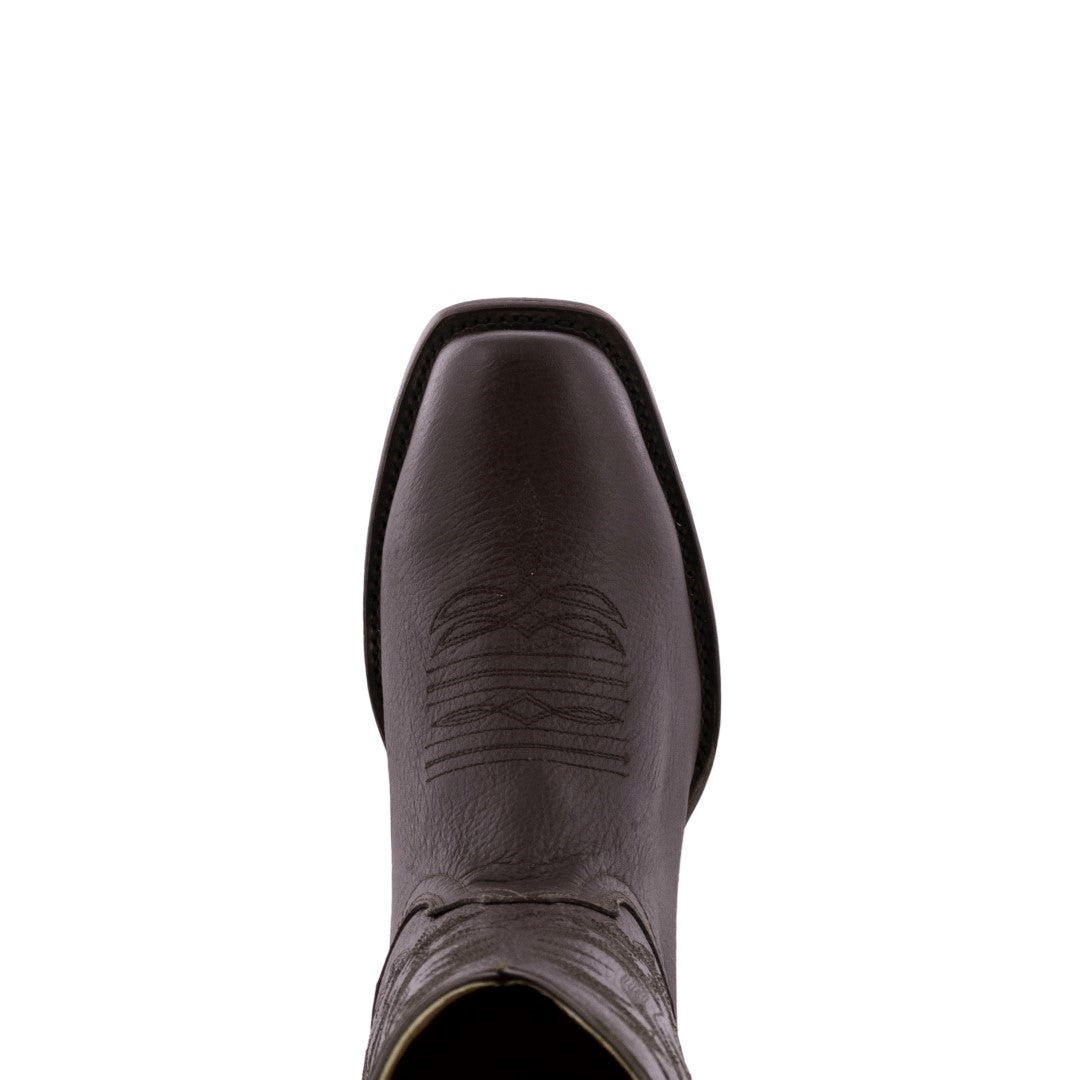 Mens Brown Western Cowboy Boots Solid Leather Square Toe