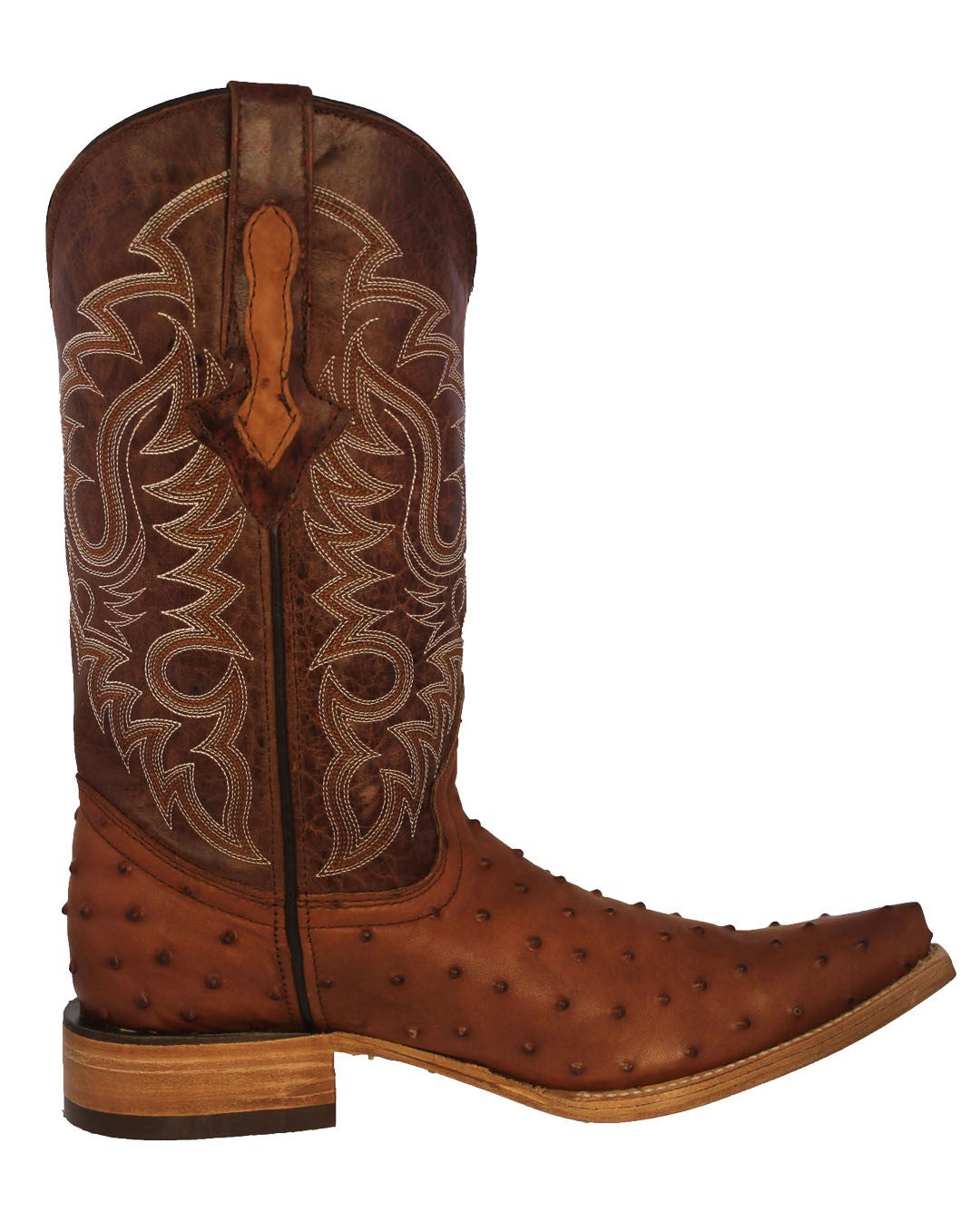 Mens Cognac Ostrich Quill Print Leather Cowboy Boots - 3X Toe