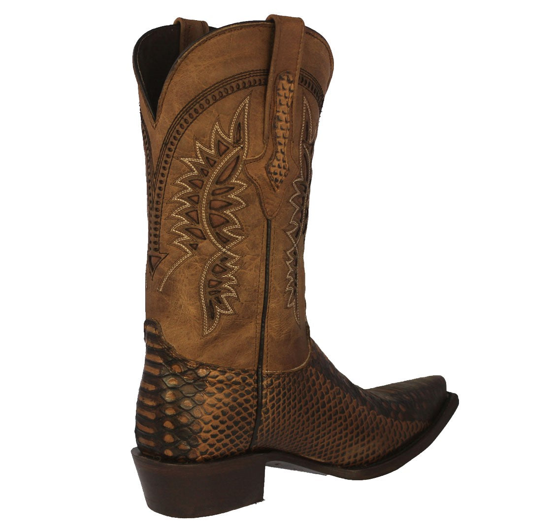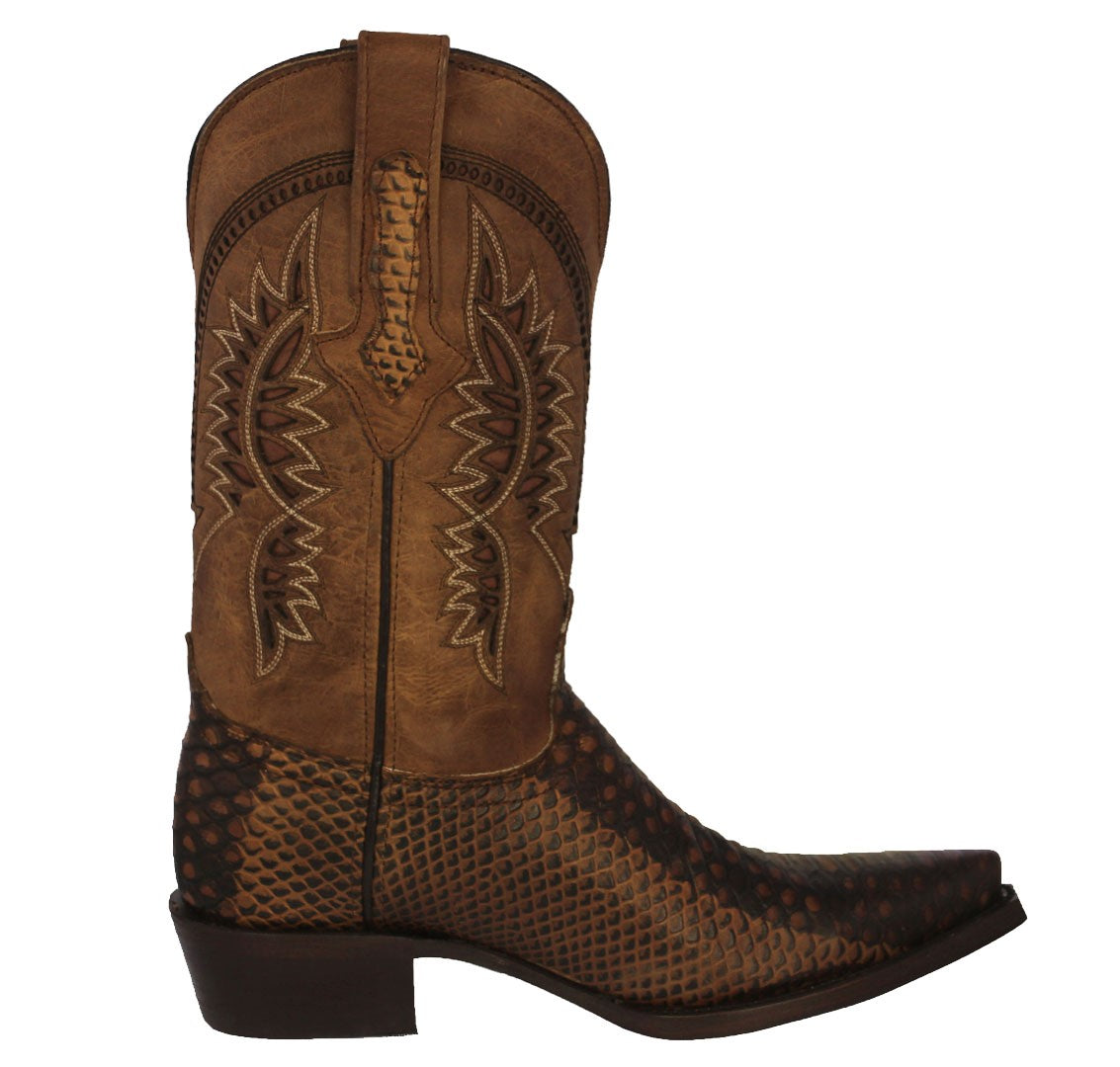 Mens Honey Brown Snake Print Leather Cowboy Boots - Snip Toe