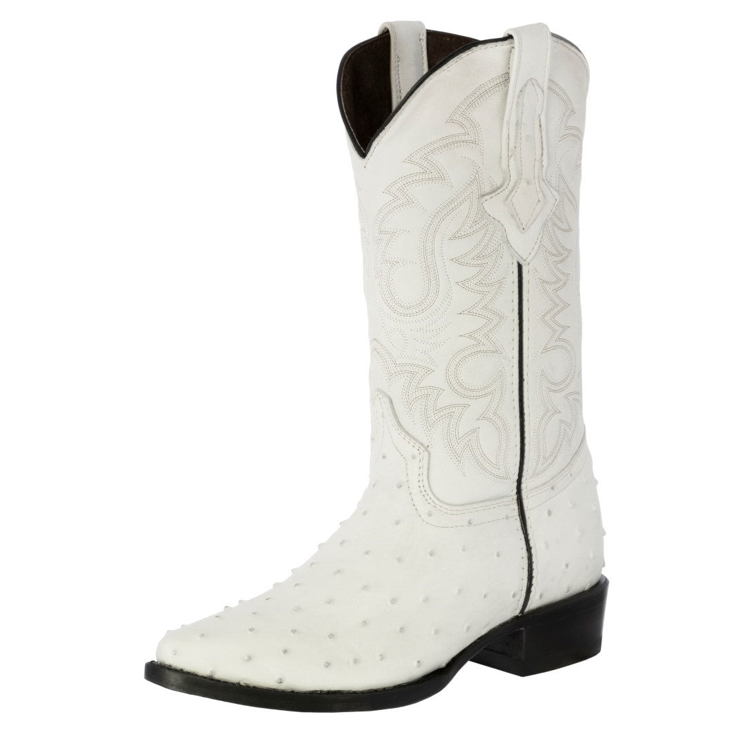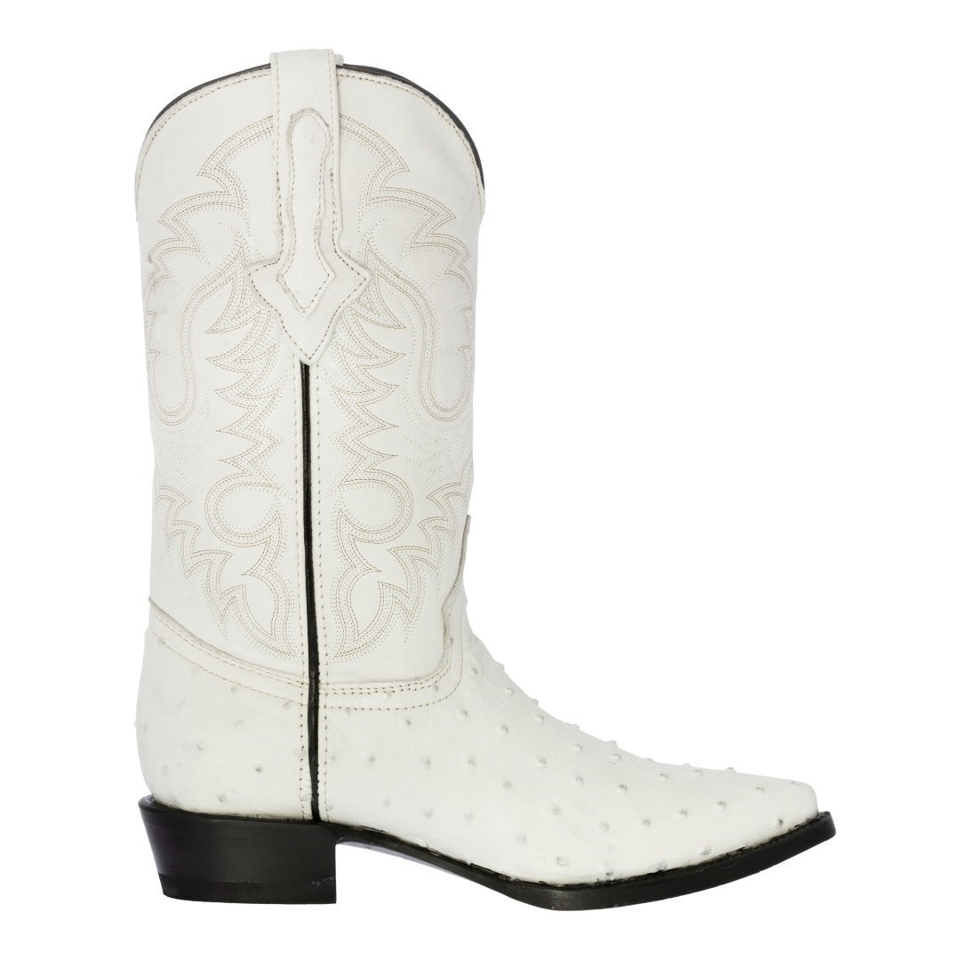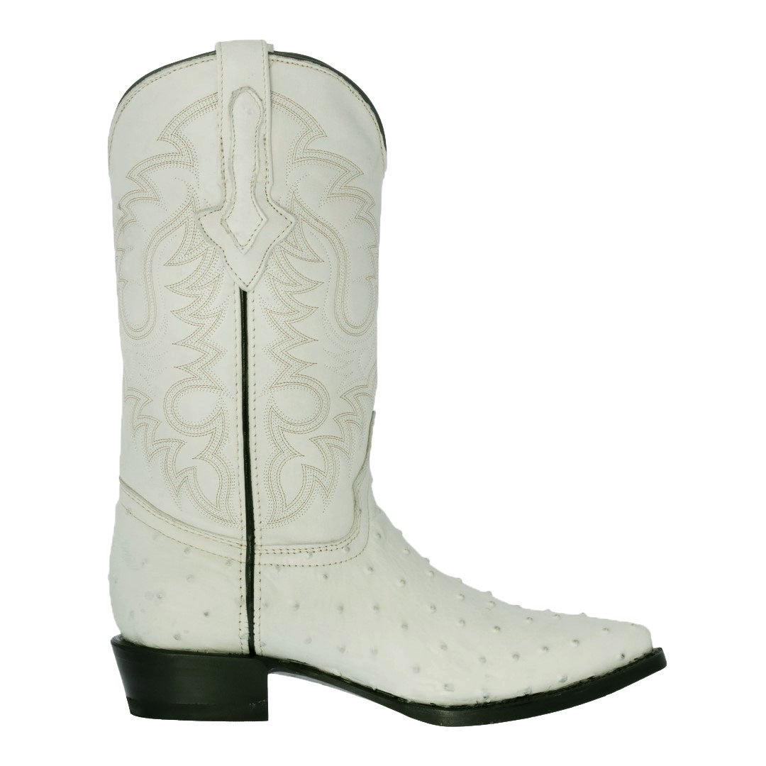 Mens Off White Ostrich Quill Print Cowboy Boots - J Toe