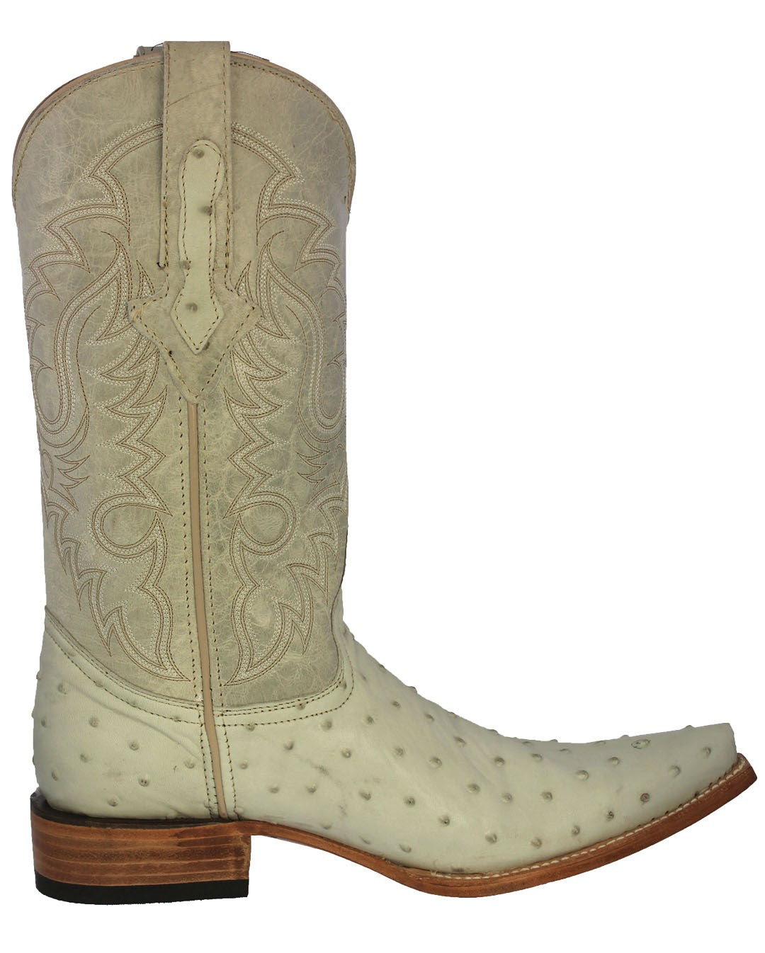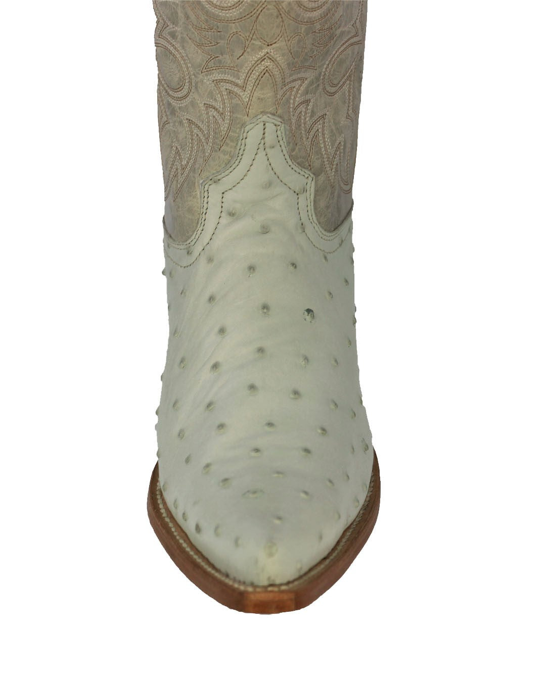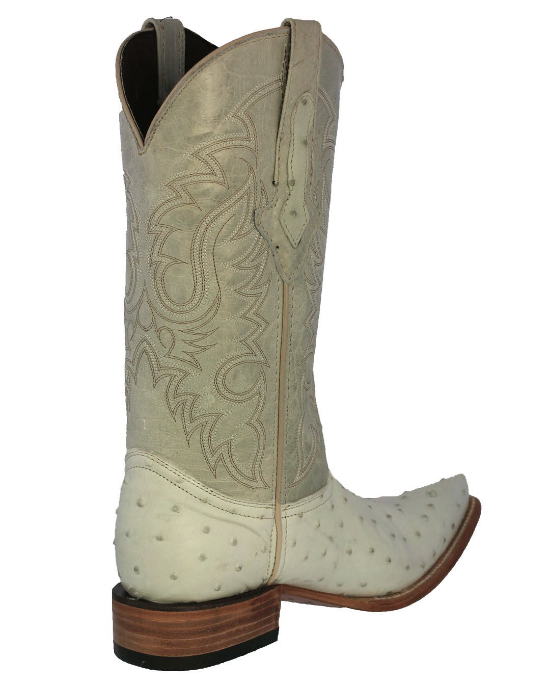Mens Off White Ostrich Quill Print Leather Cowboy Boots - 3X Toe