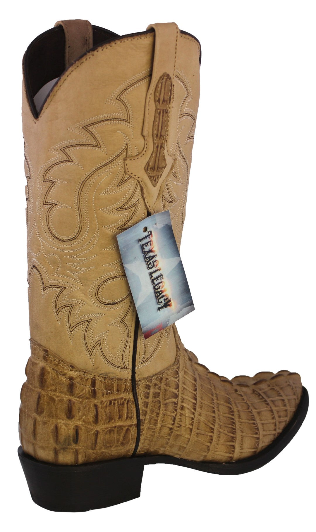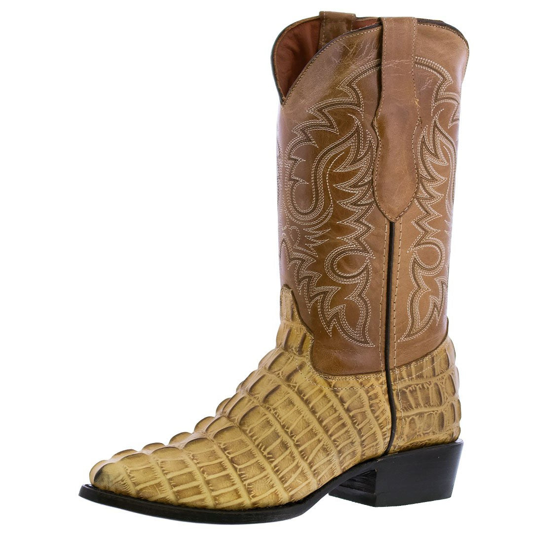 Mens #130 Sand Alligator Tail Print Leather Cowboy Boots - J Toe
