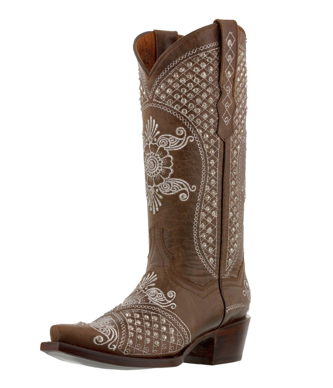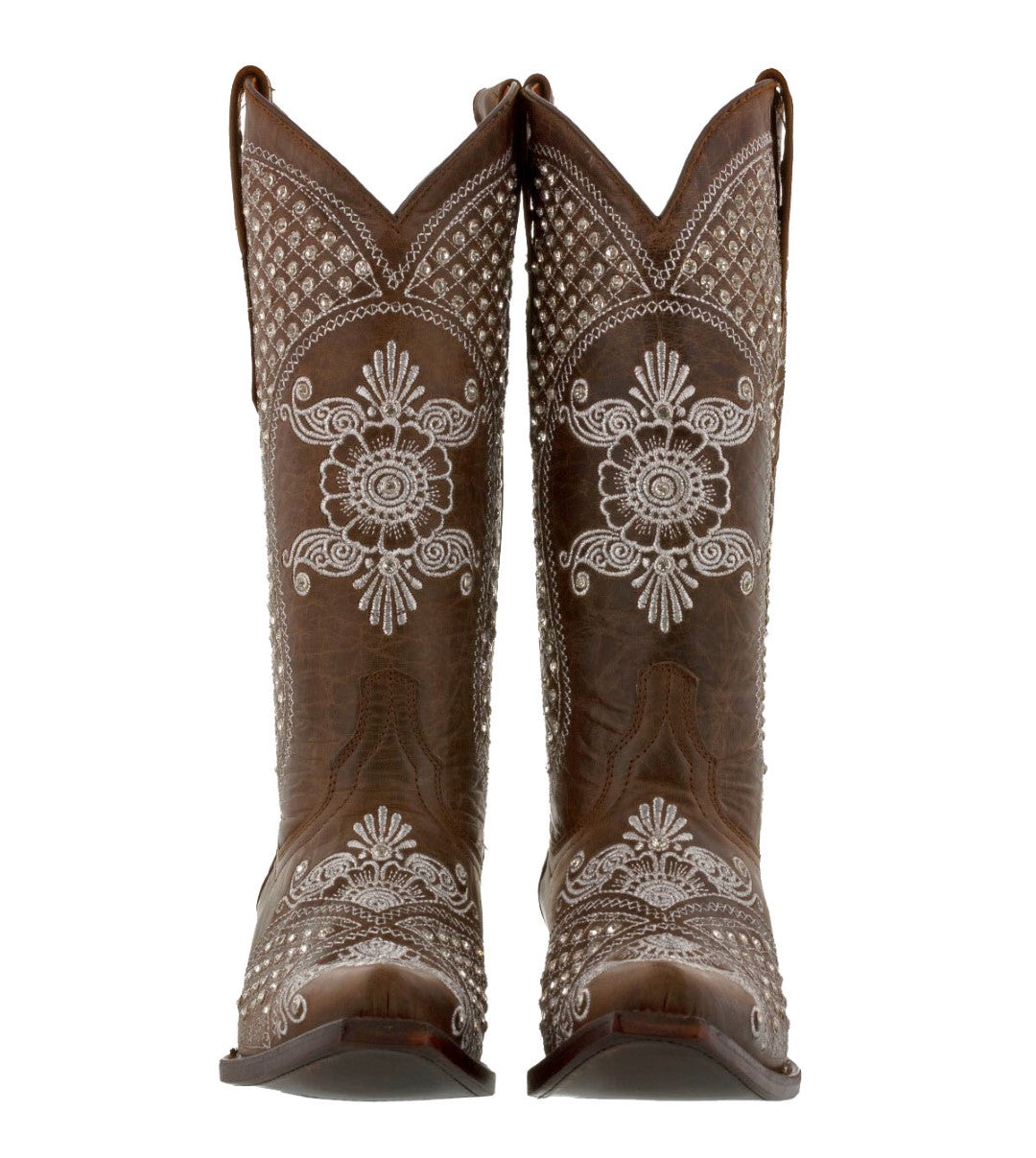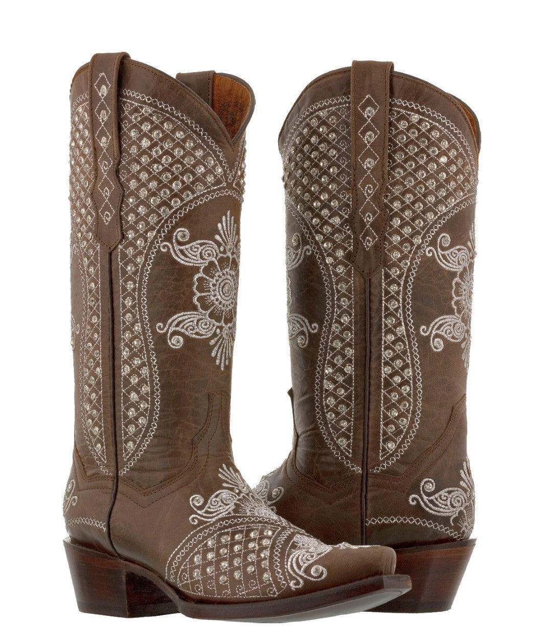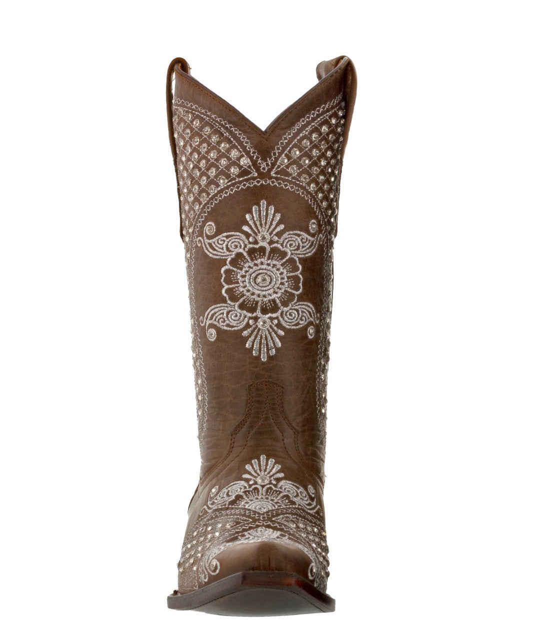 Womens Marfil Brown Wedding Cowboy Boots Rhinestones - Snip Toe