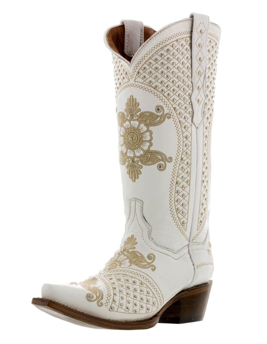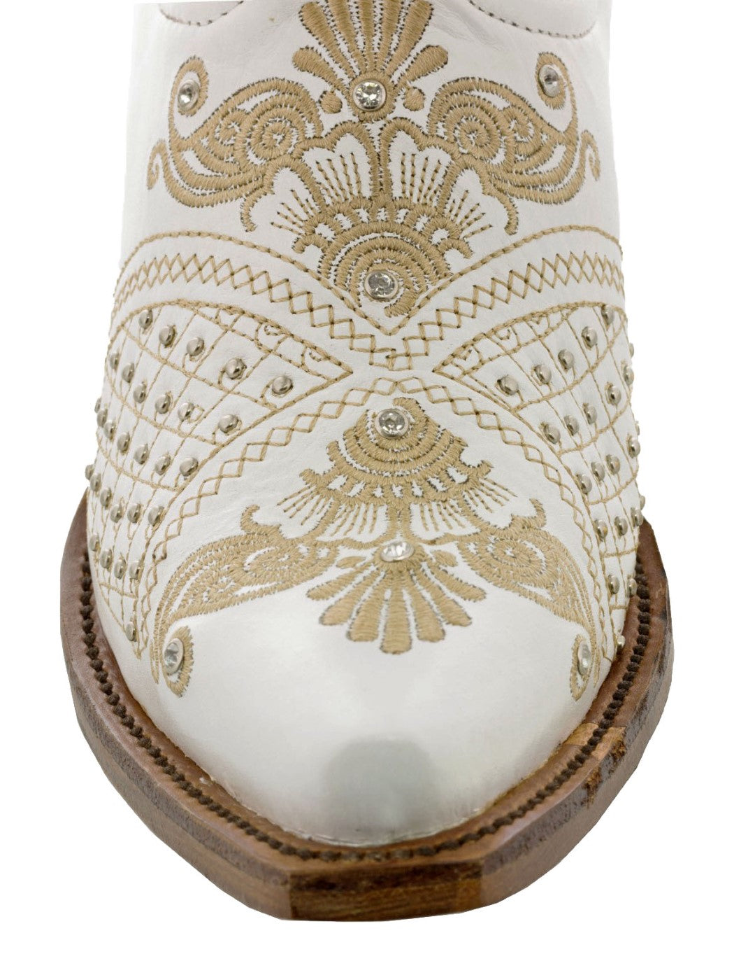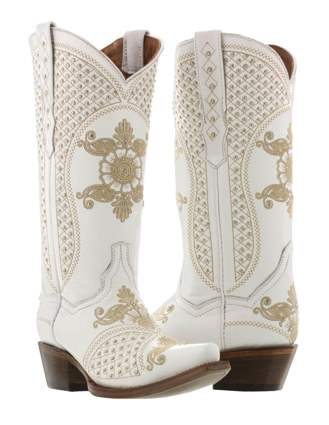 Womens Marfil White Wedding Cowboy Boots Studded - Snip Toe