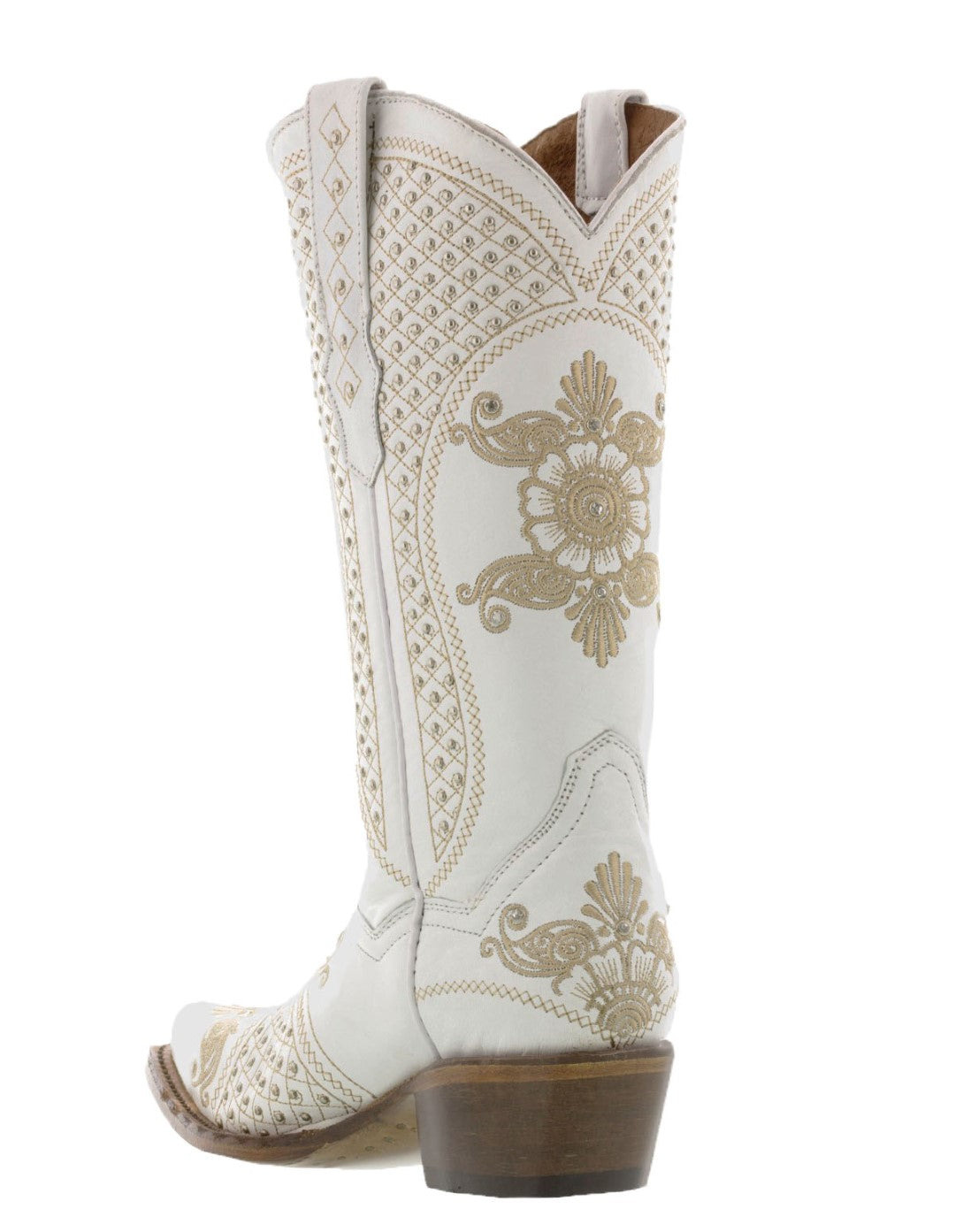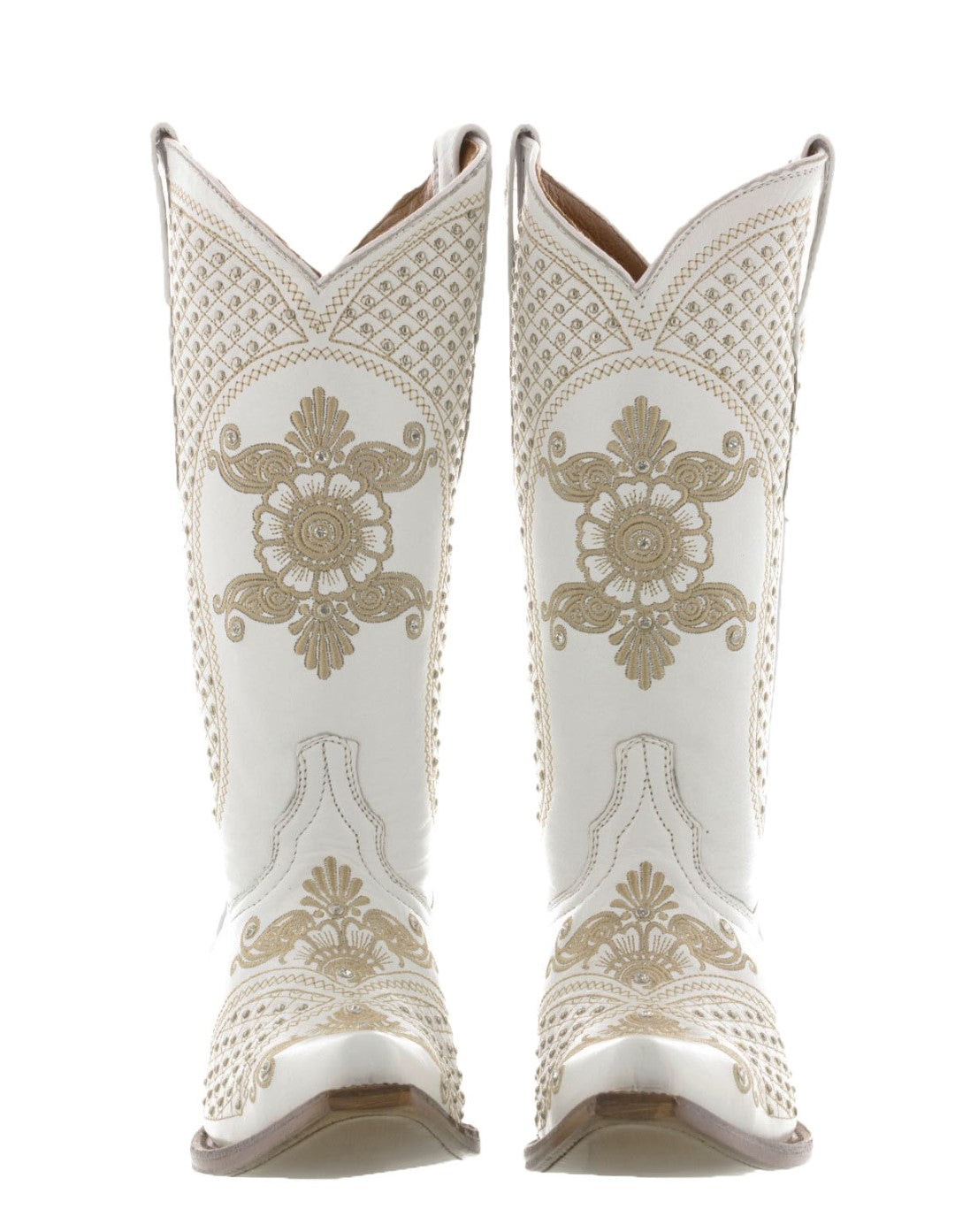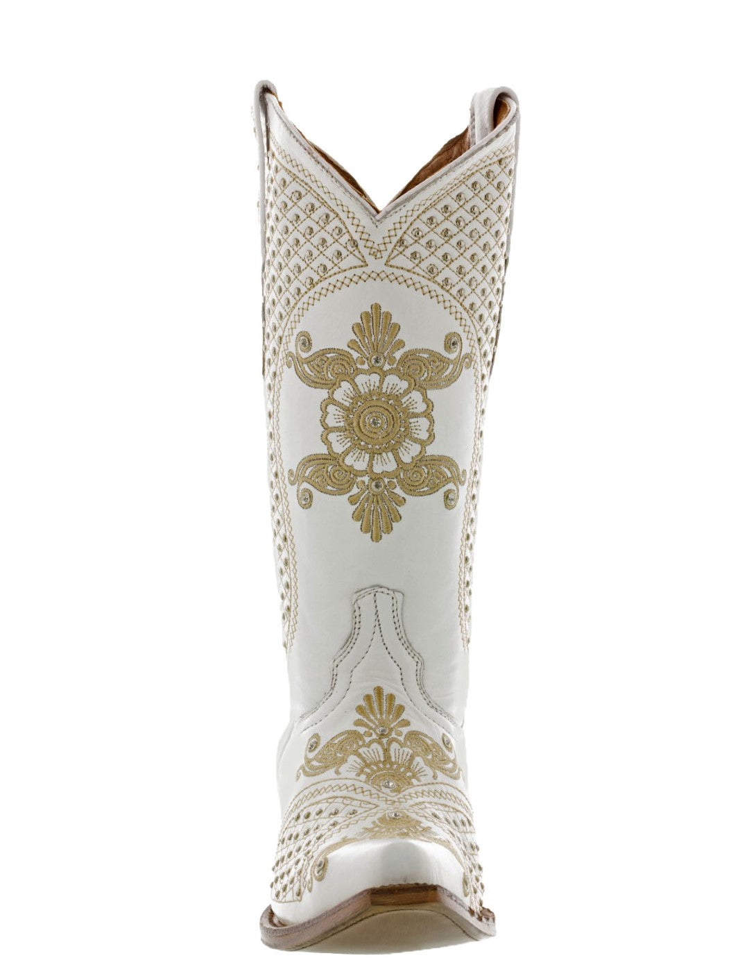 Womens Marfil White Wedding Cowboy Boots Studded - Snip Toe