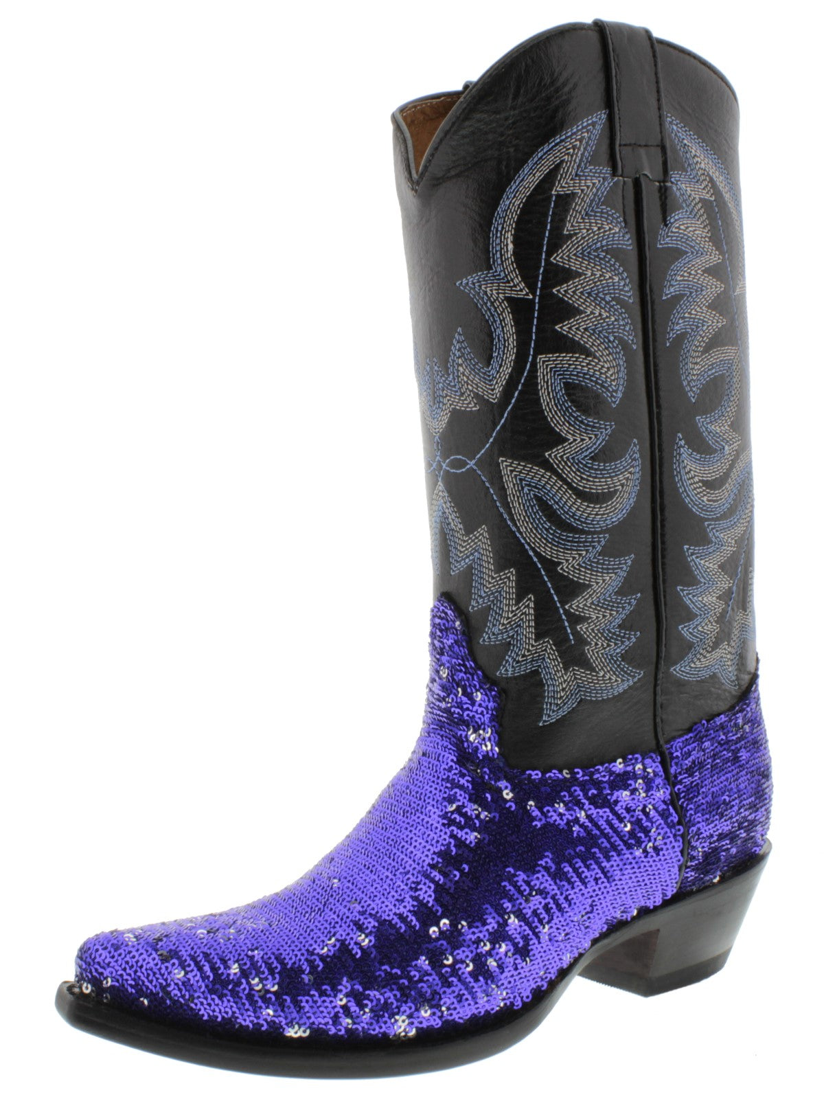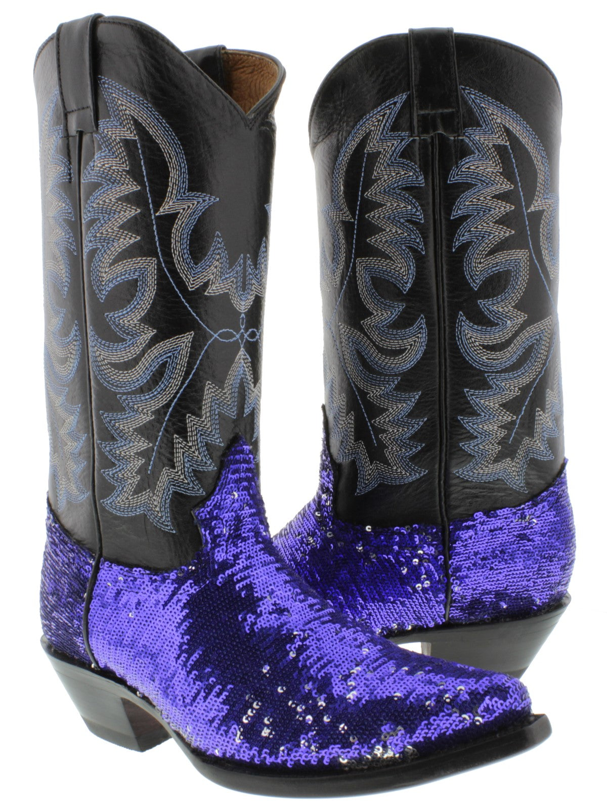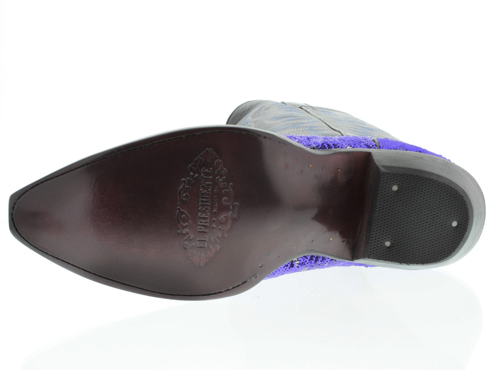 Description: Introducing the El Presidente Sequins Leather Cowboy Boot Collection, a hand crafted Western Cowboy Boot built for comfort and durability. Along with an elegant overlay of sequins, this boot is a must have for any collection. Hit the dance floor with your best foot forward.