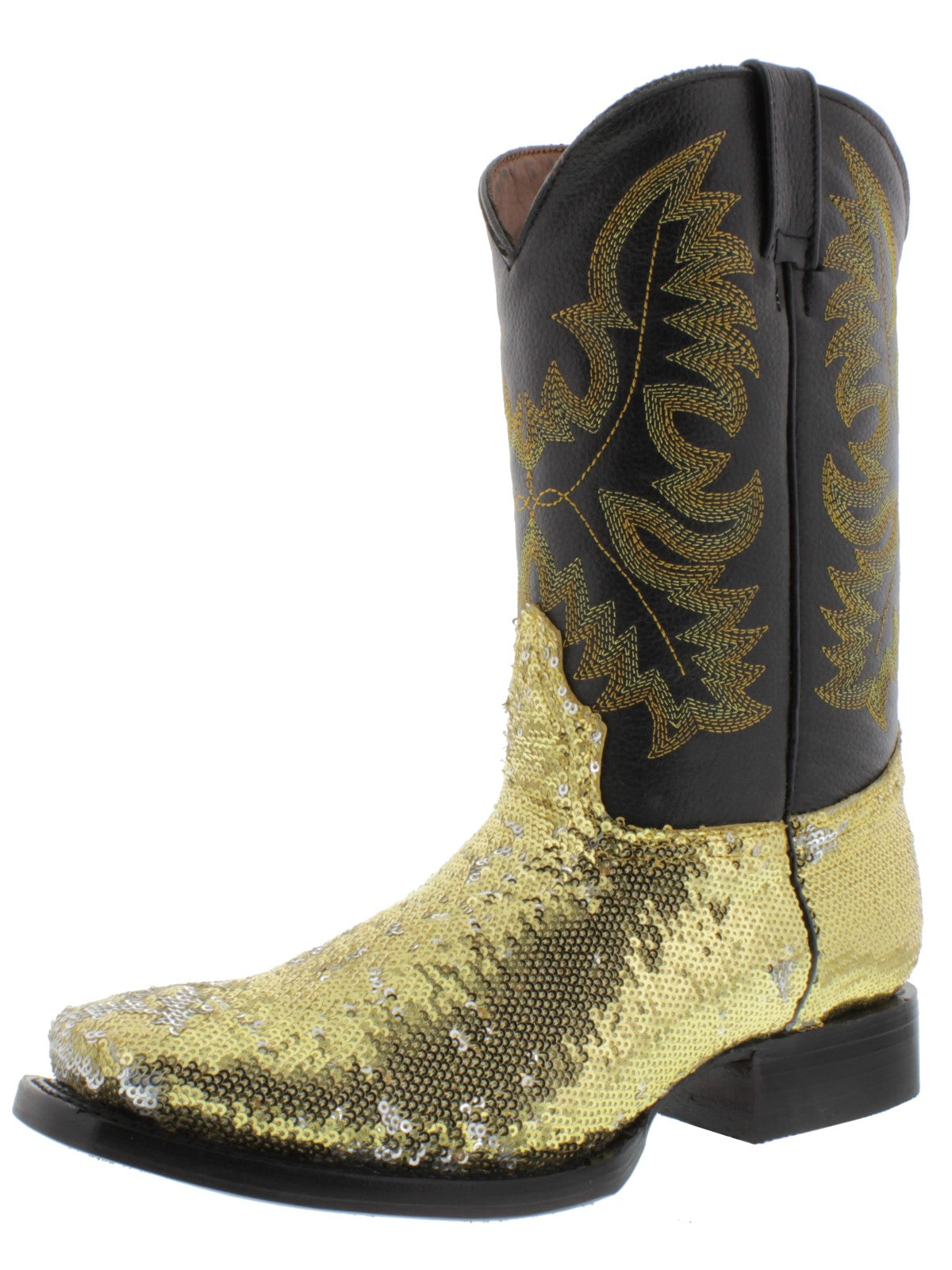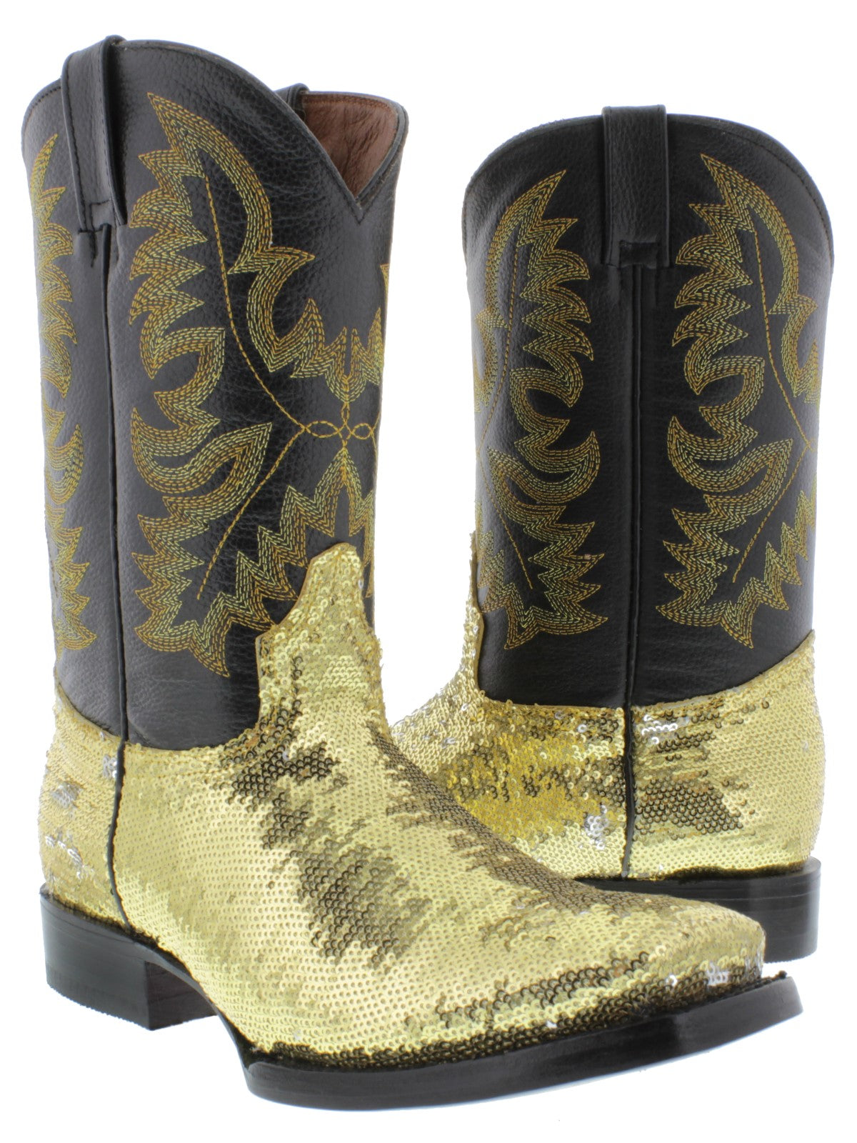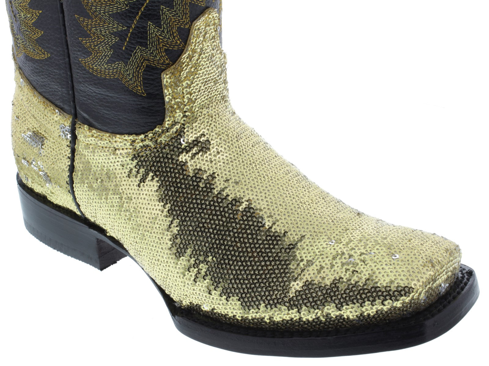 Womens Gold Sequins Leather Cowgirl Boots Square Toe - #800