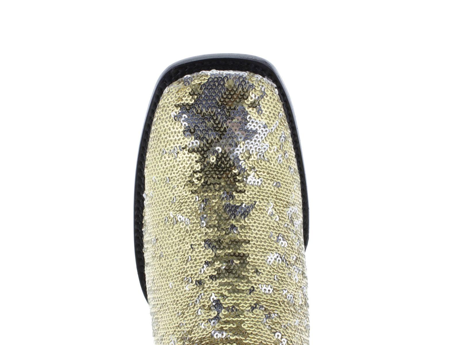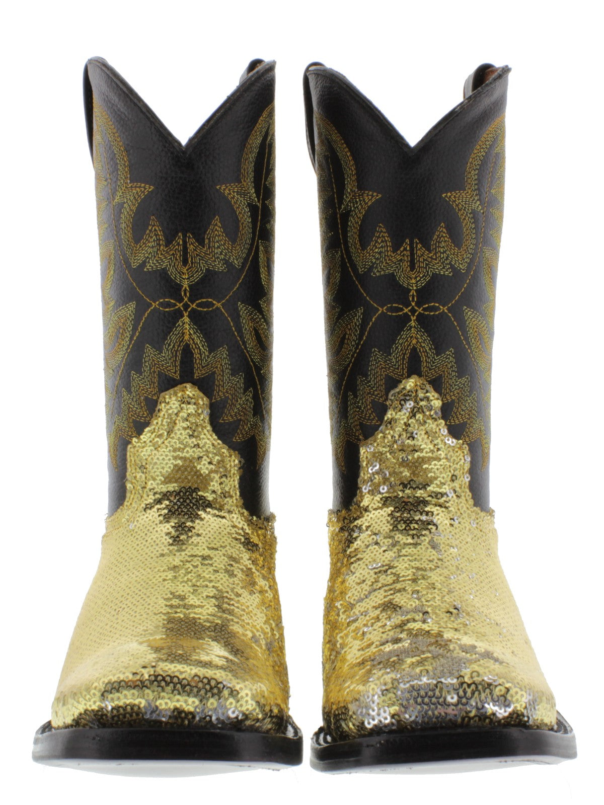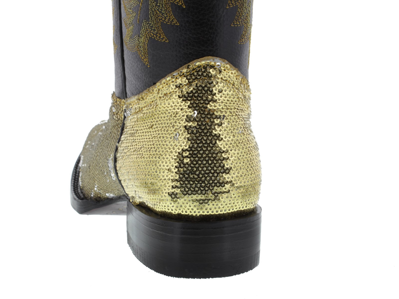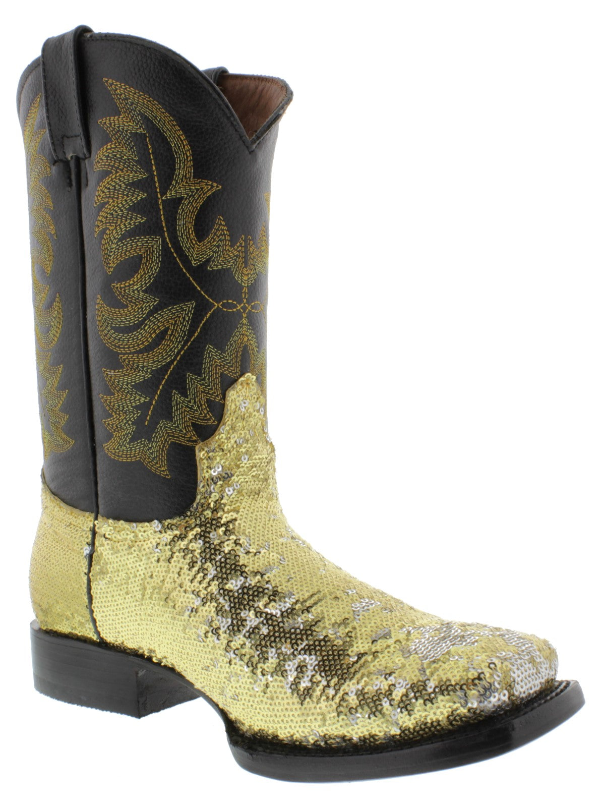 Womens Gold Sequins Leather Cowgirl Boots Square Toe - #800