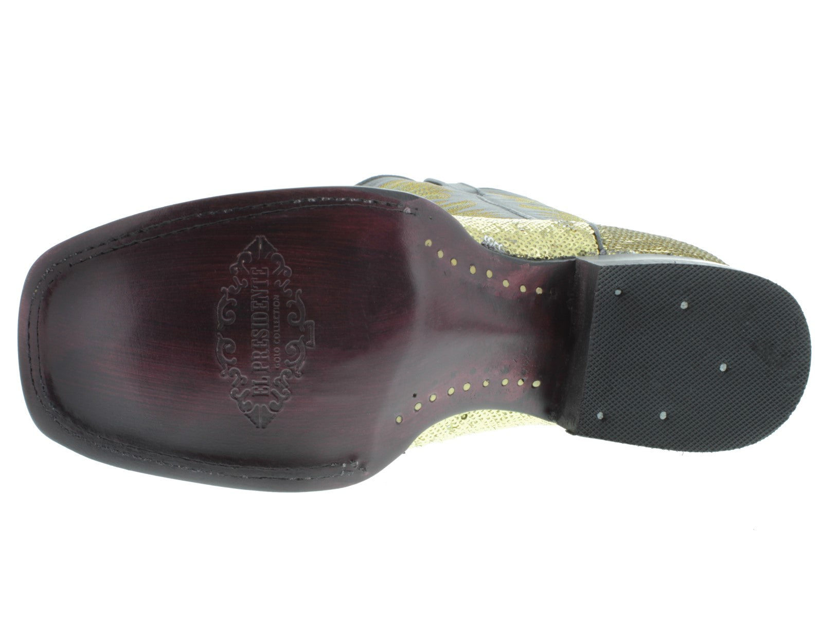 • Description: Introducing the El Presidente Sequins Leather Cowboy Boot Collection, a hand crafted Western Cowboy Boot built for comfort and durability. Along with an elegant overlay of sequins, this boot is a must have for any collection. Hit the dance floor with your best foot forward.