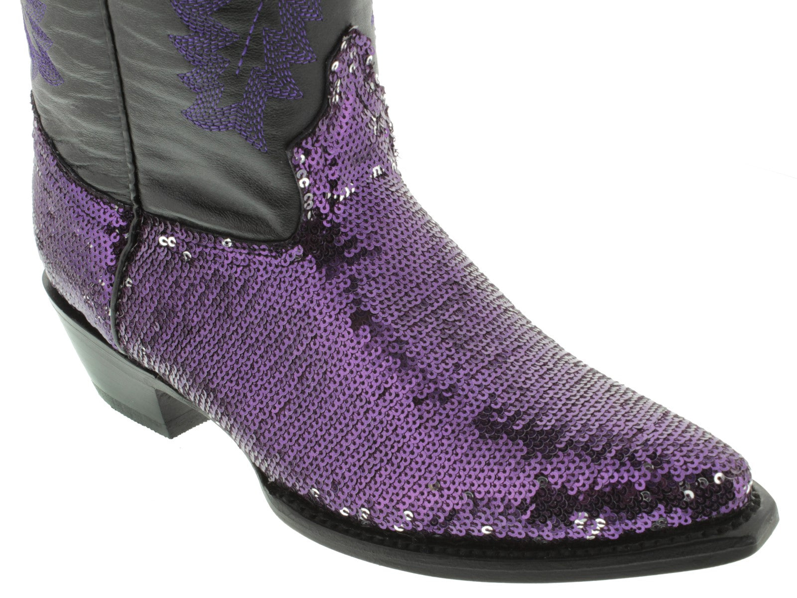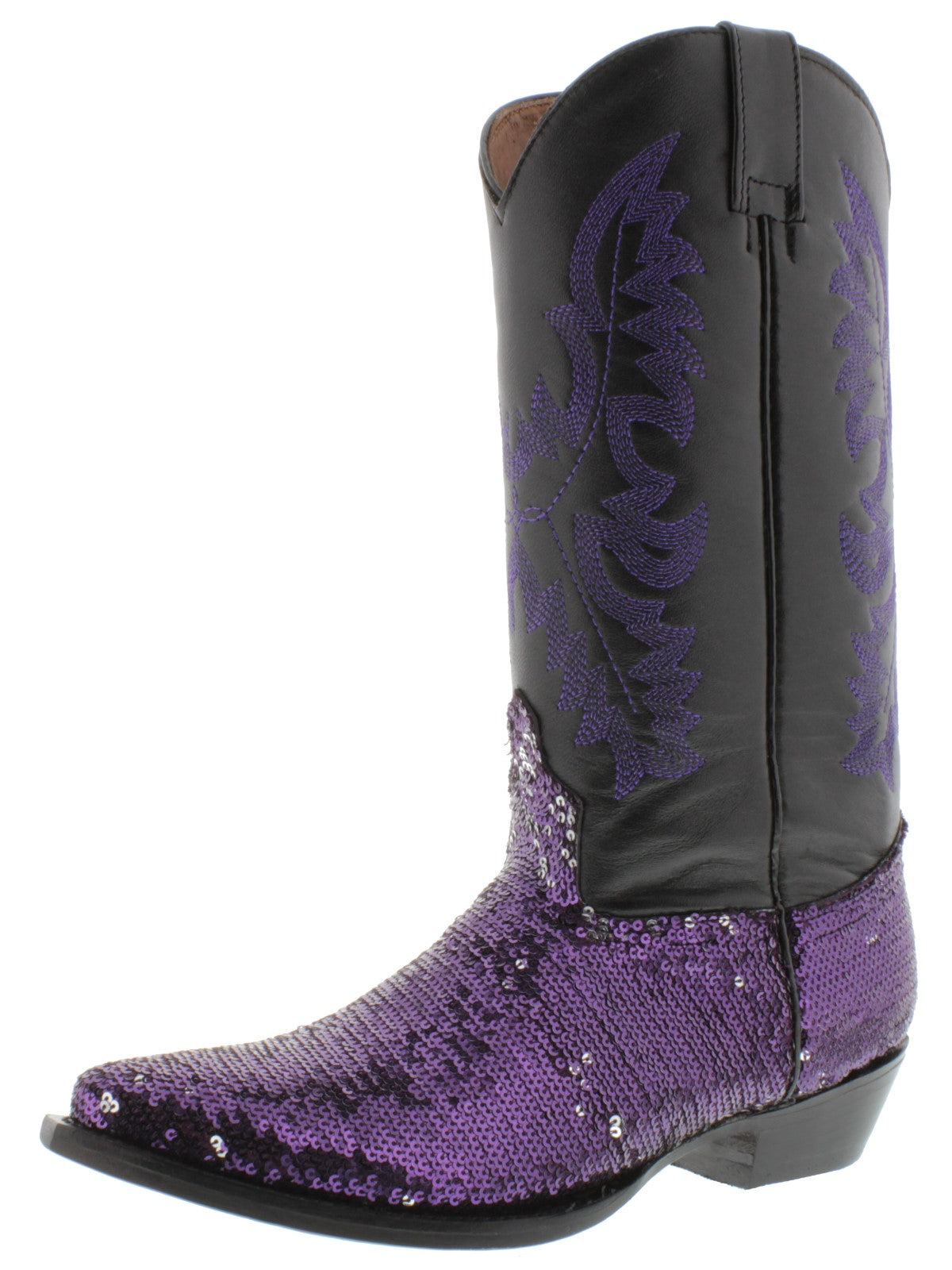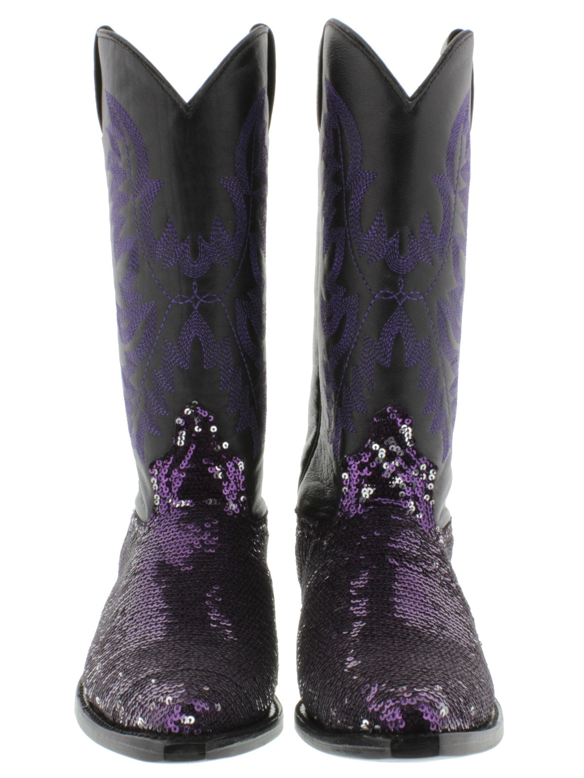 Women's Purple Sequins Western Rodeo Cowboy Boots Snip Toe