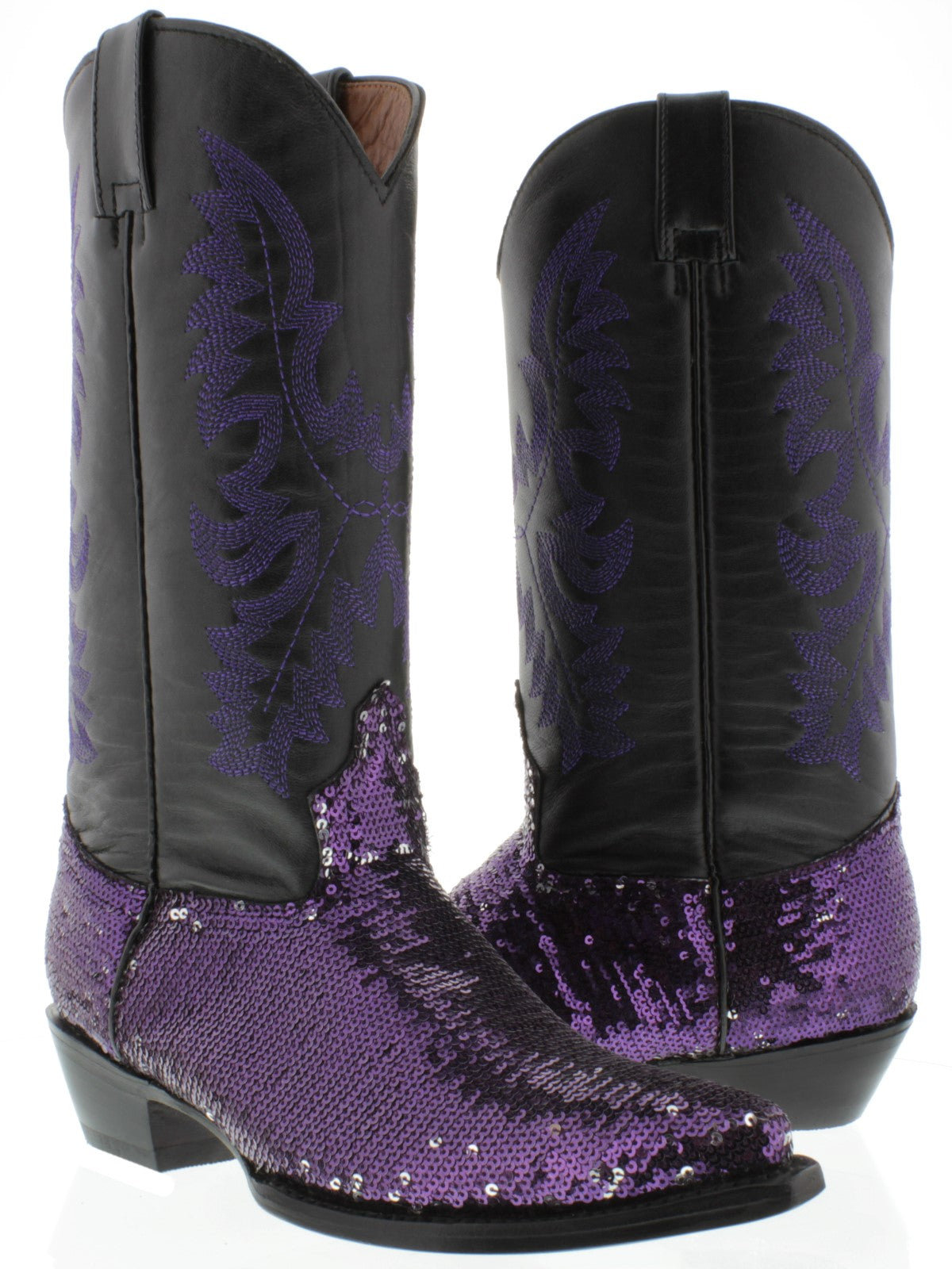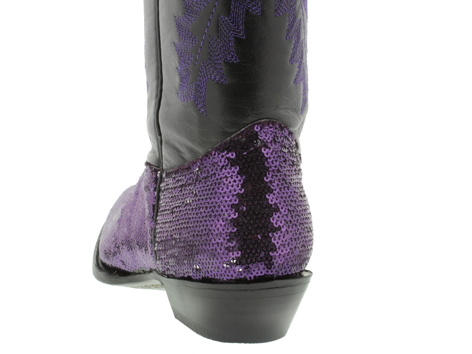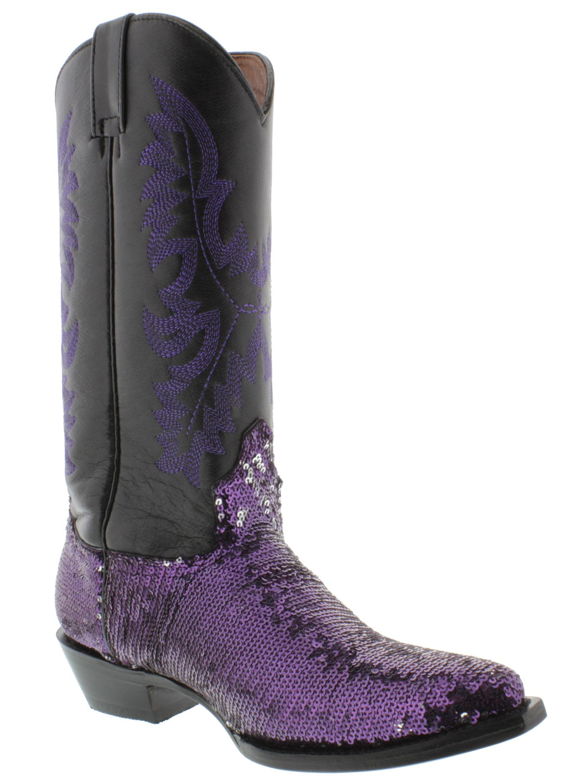 Women's Purple Sequins Western Rodeo Cowboy Boots Snip Toe
