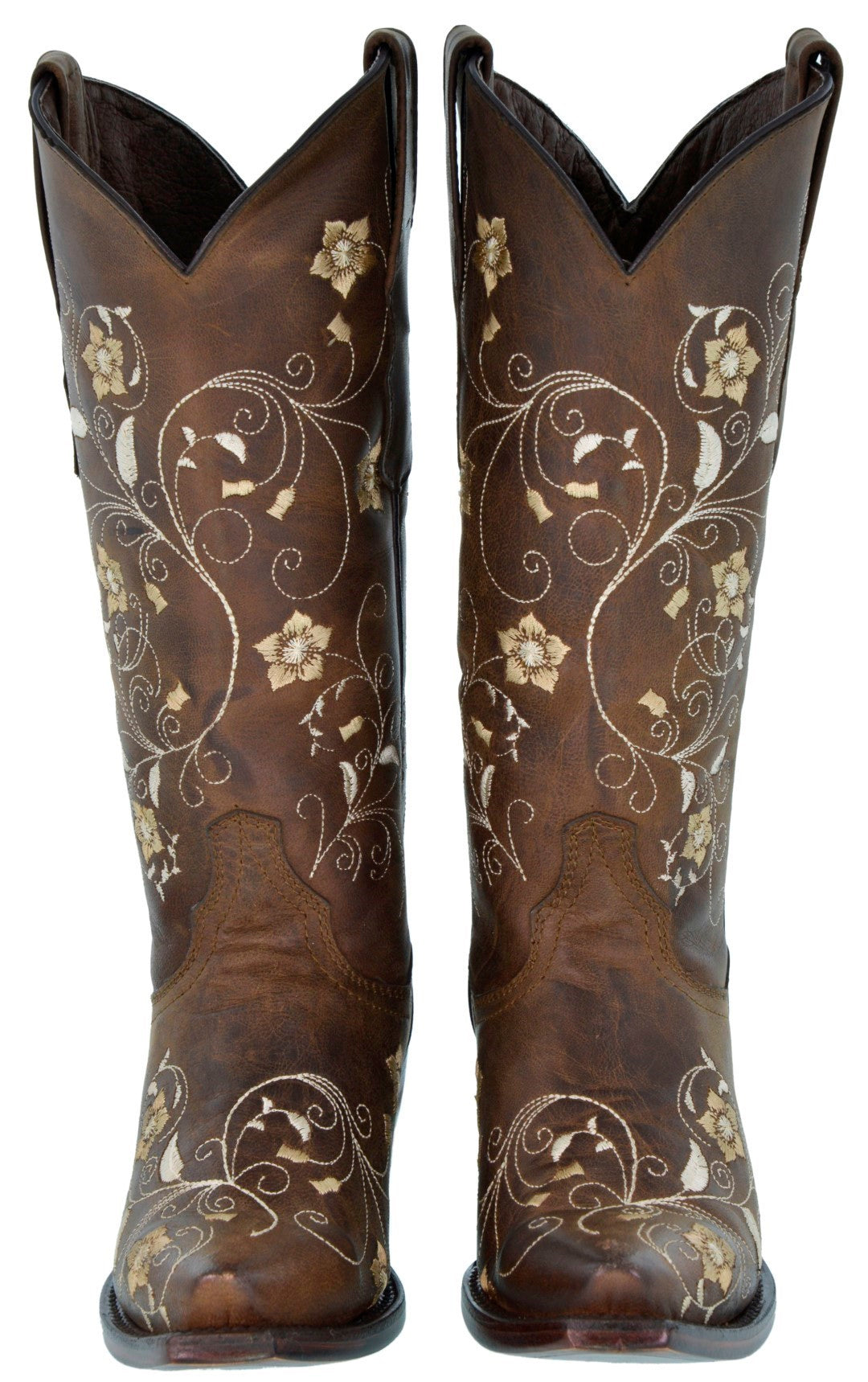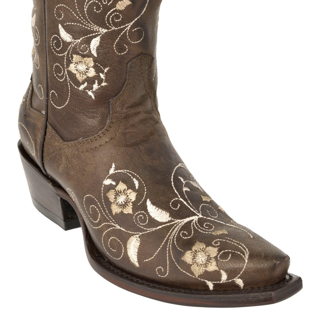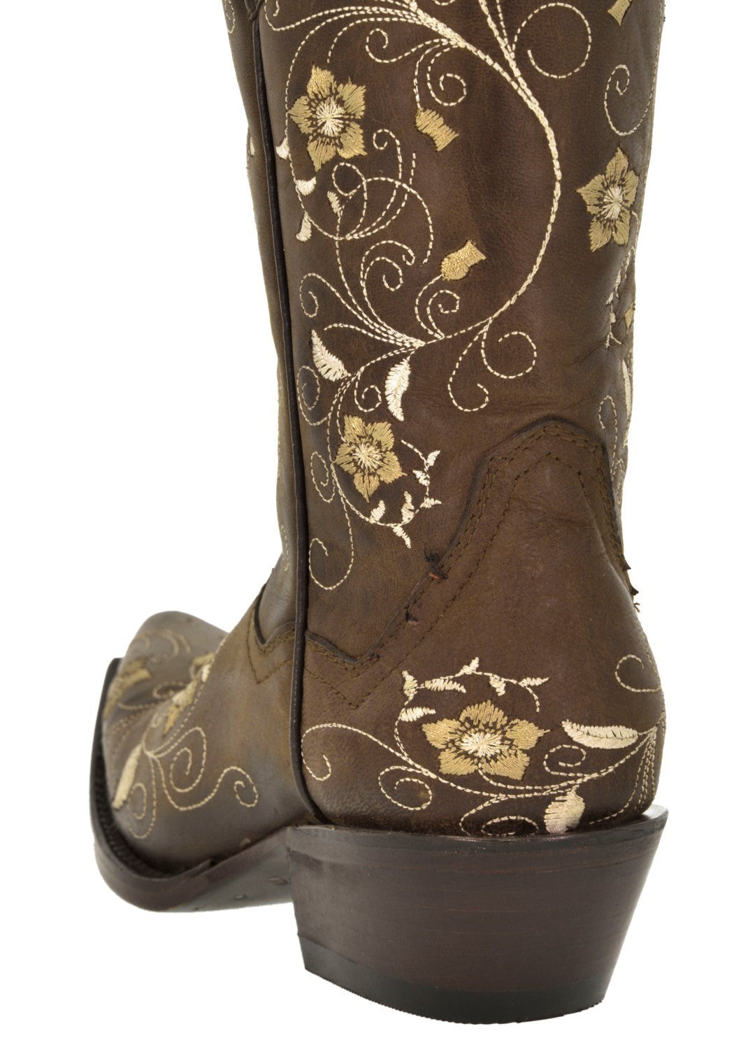 Womens Sofia Brown Leather Cowboy Boots Floral - Snip Toe