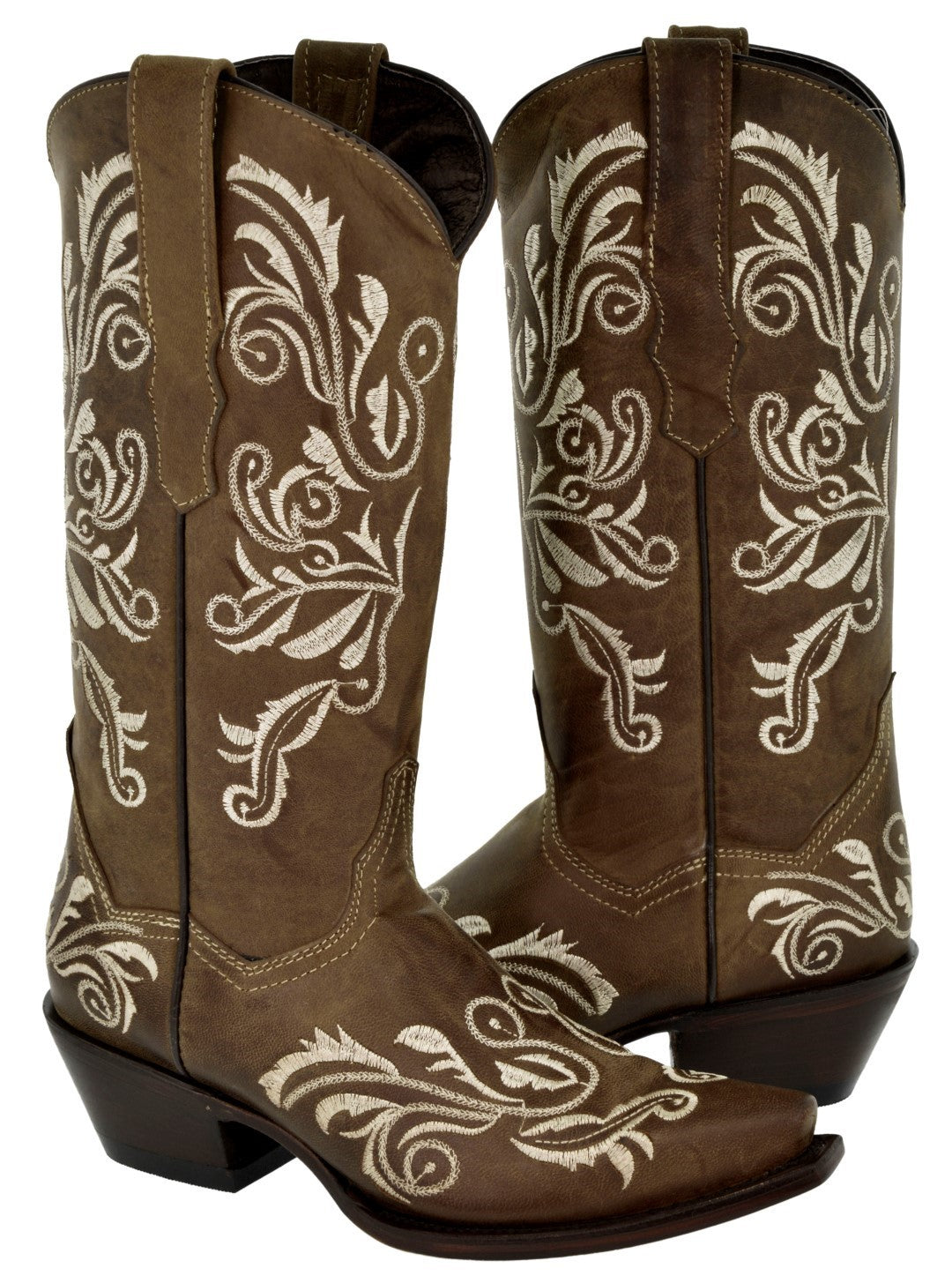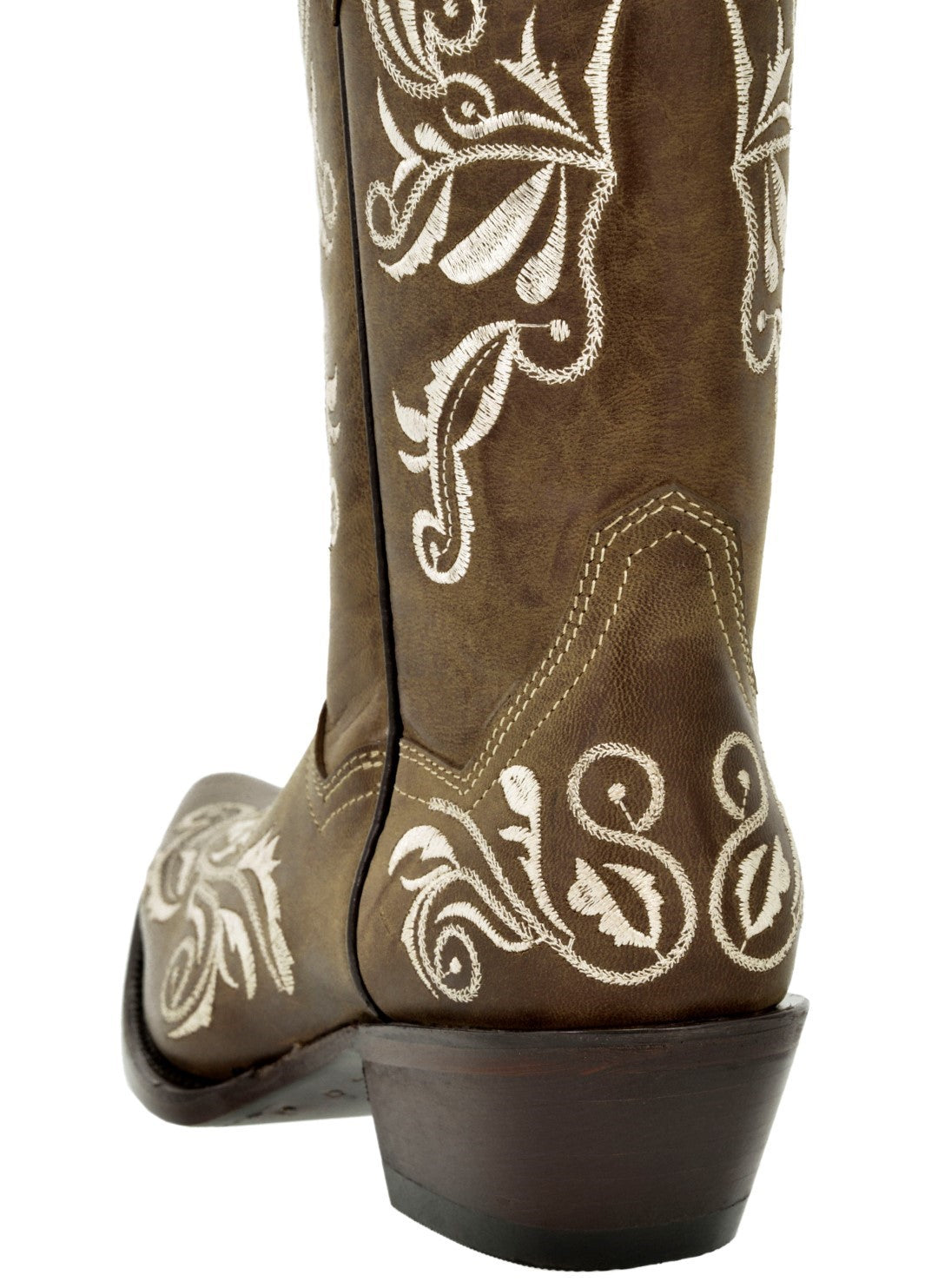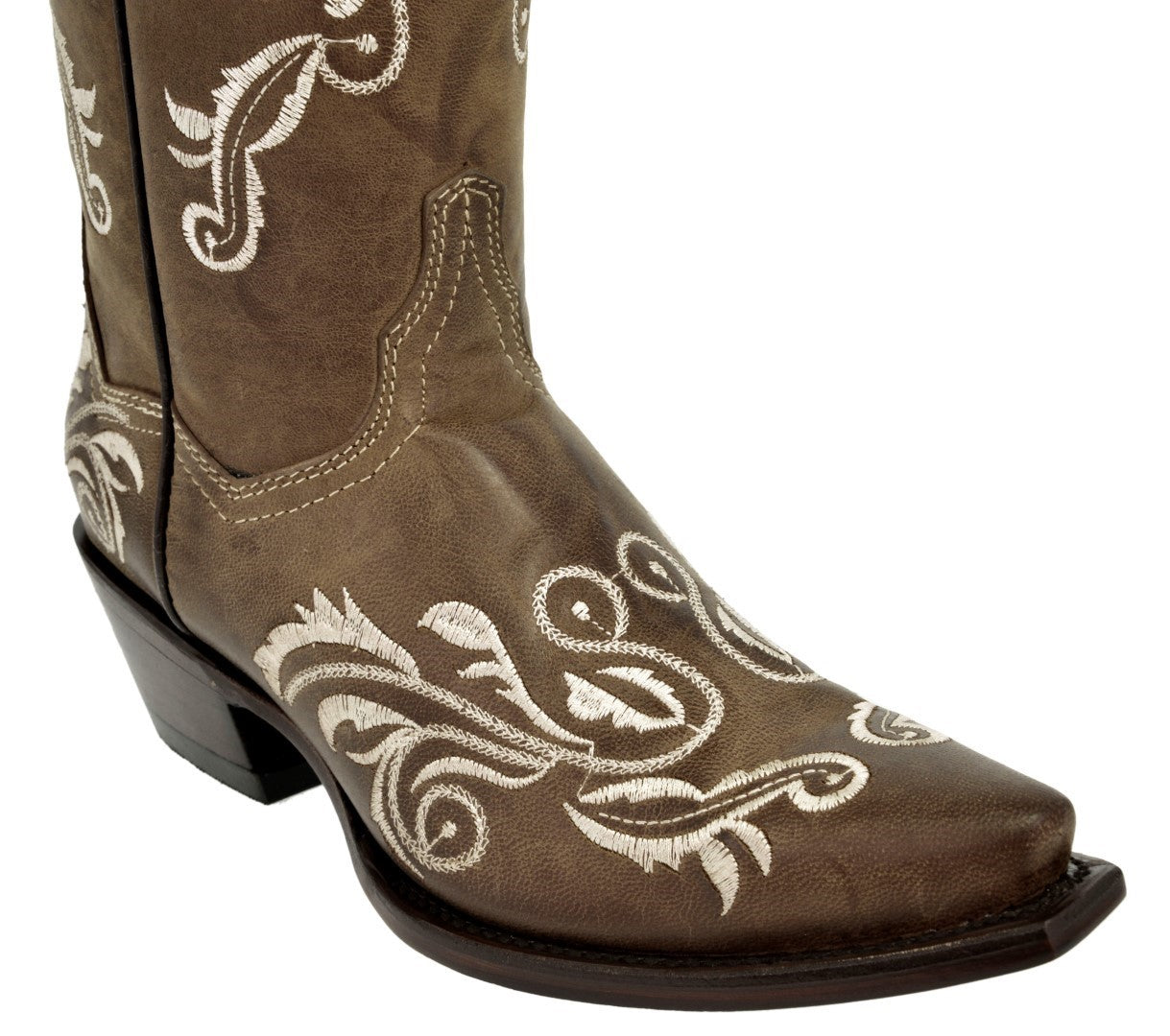 Womens Granada Light Brown Cowboy Boots Swan Embroidered - Snip Toe