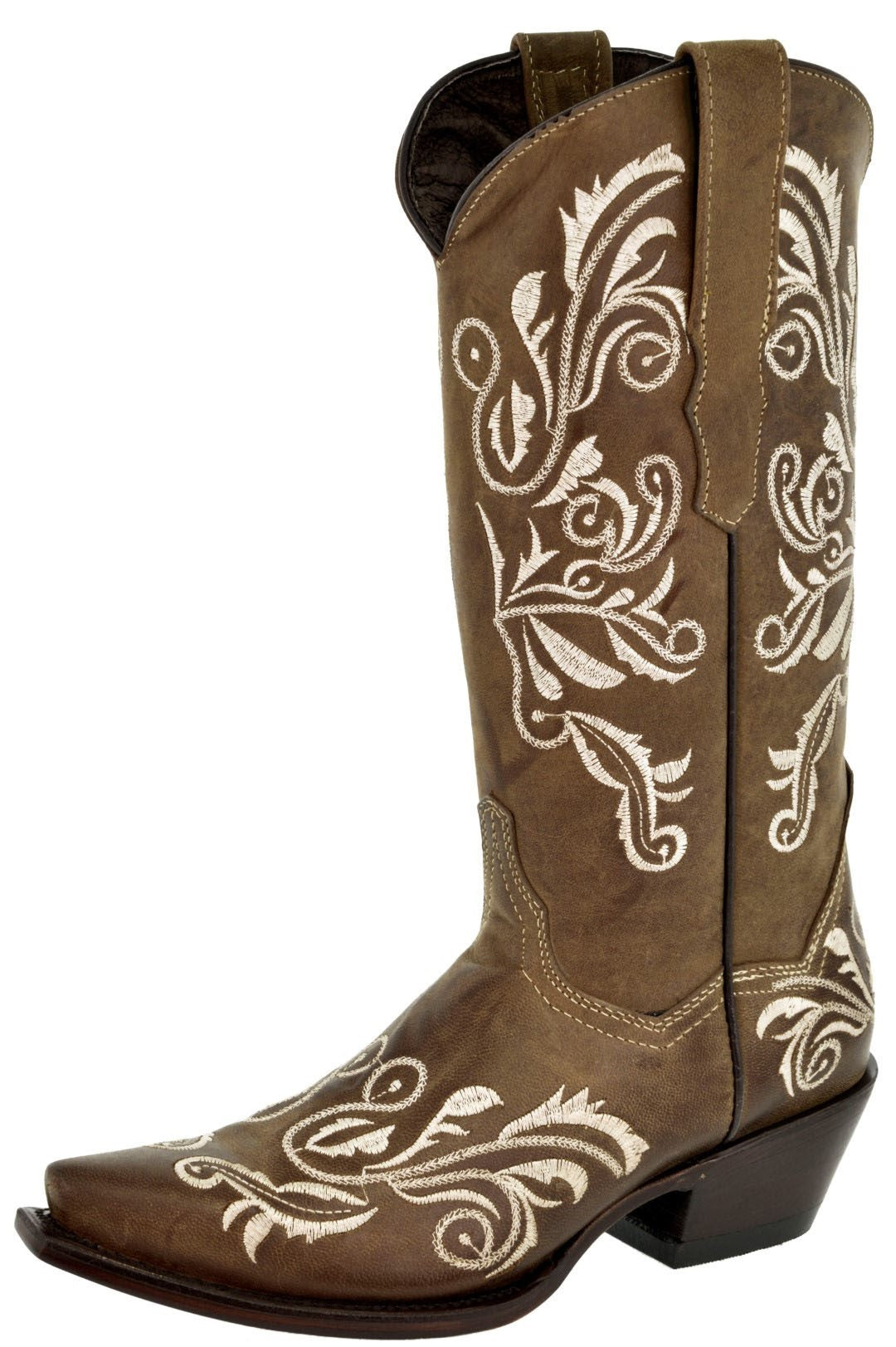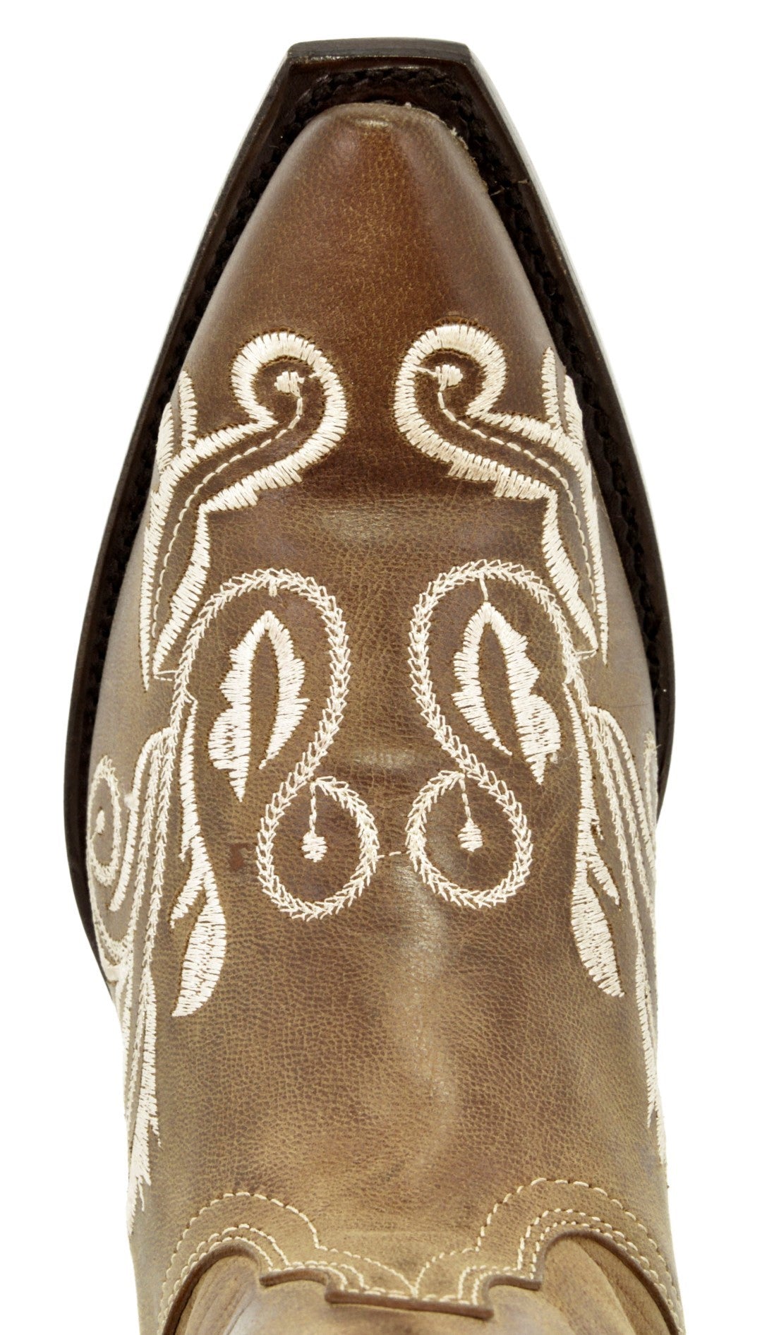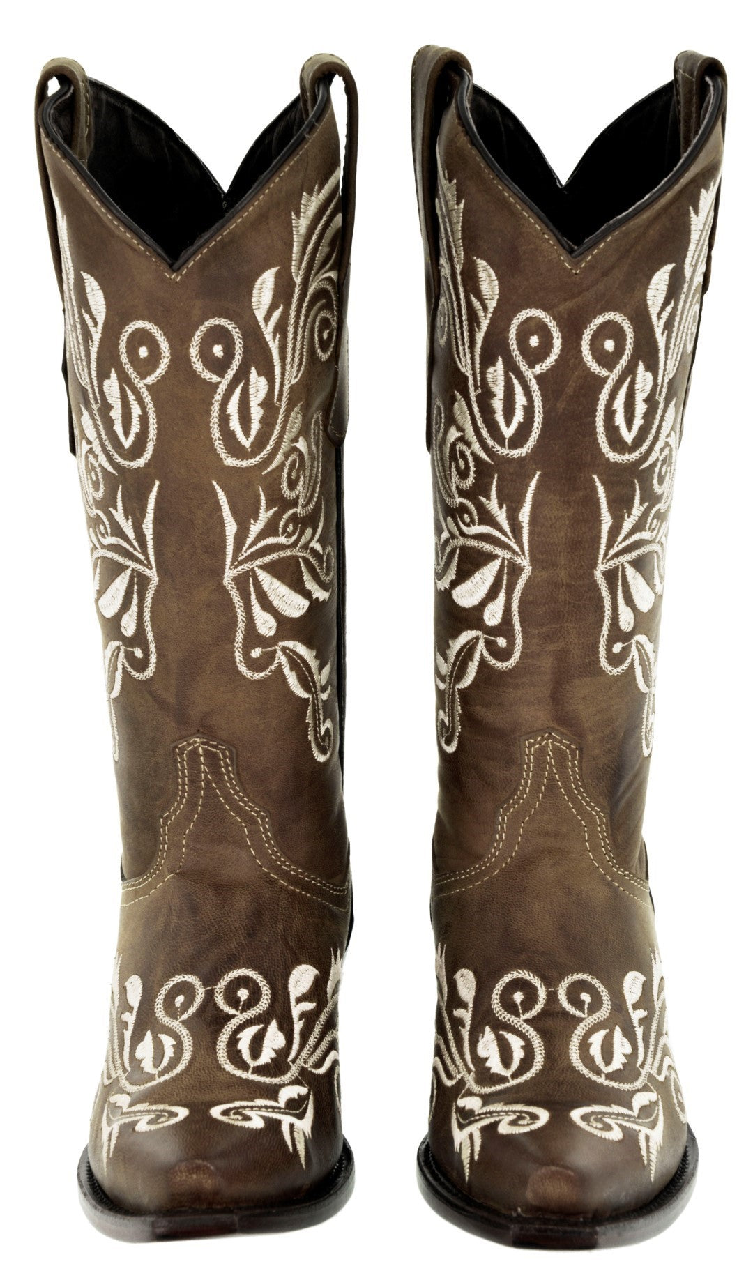 Womens Granada Light Brown Cowboy Boots Swan Embroidered - Snip Toe
