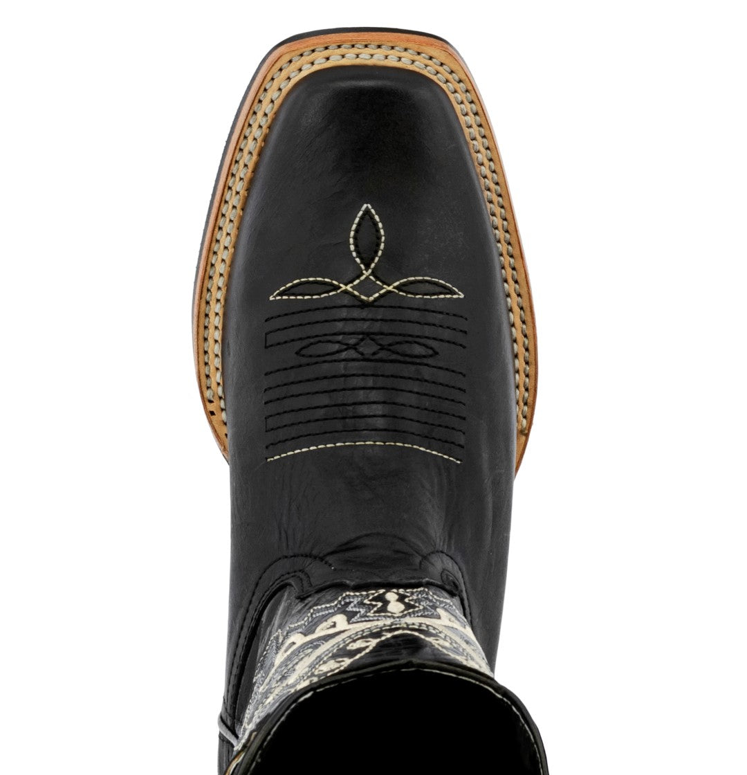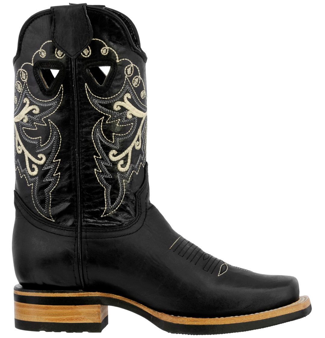 Womens Jesse Black Western Cowboy Boots Leather - Square Toe