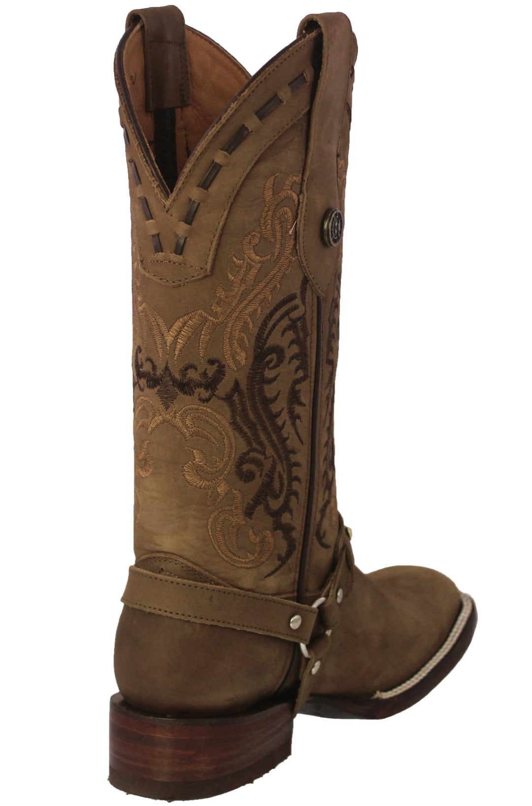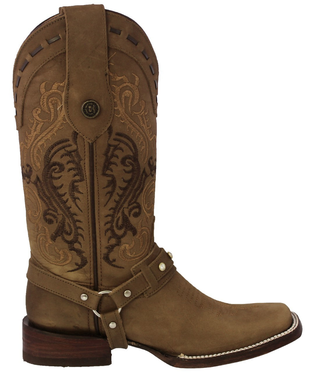 Womens Dallas Light Brown Western Boots Leather Removable Straps - Square Toe