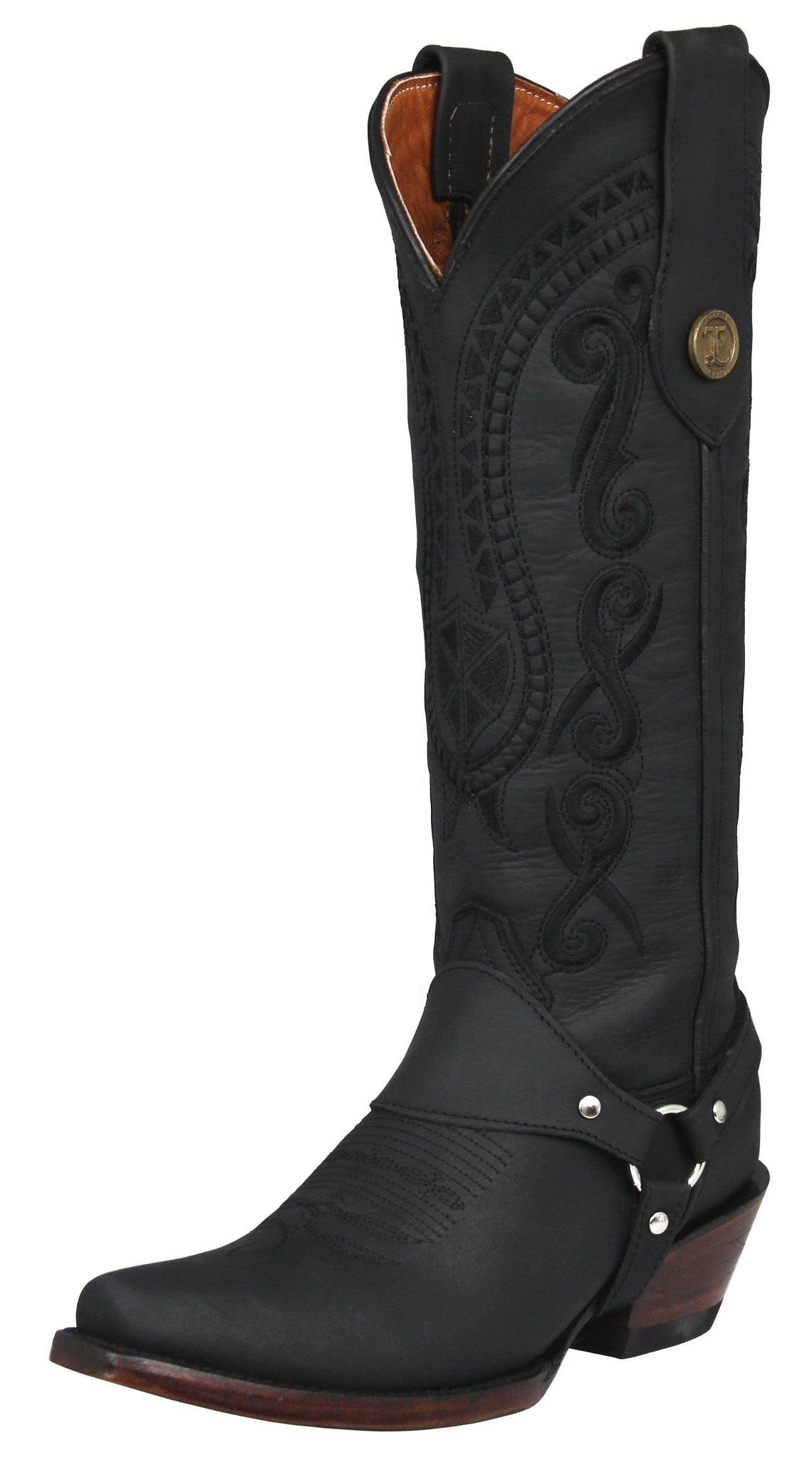 Womens Jane Black Tall Western Boots Leather Removable Strap - Snip Toe