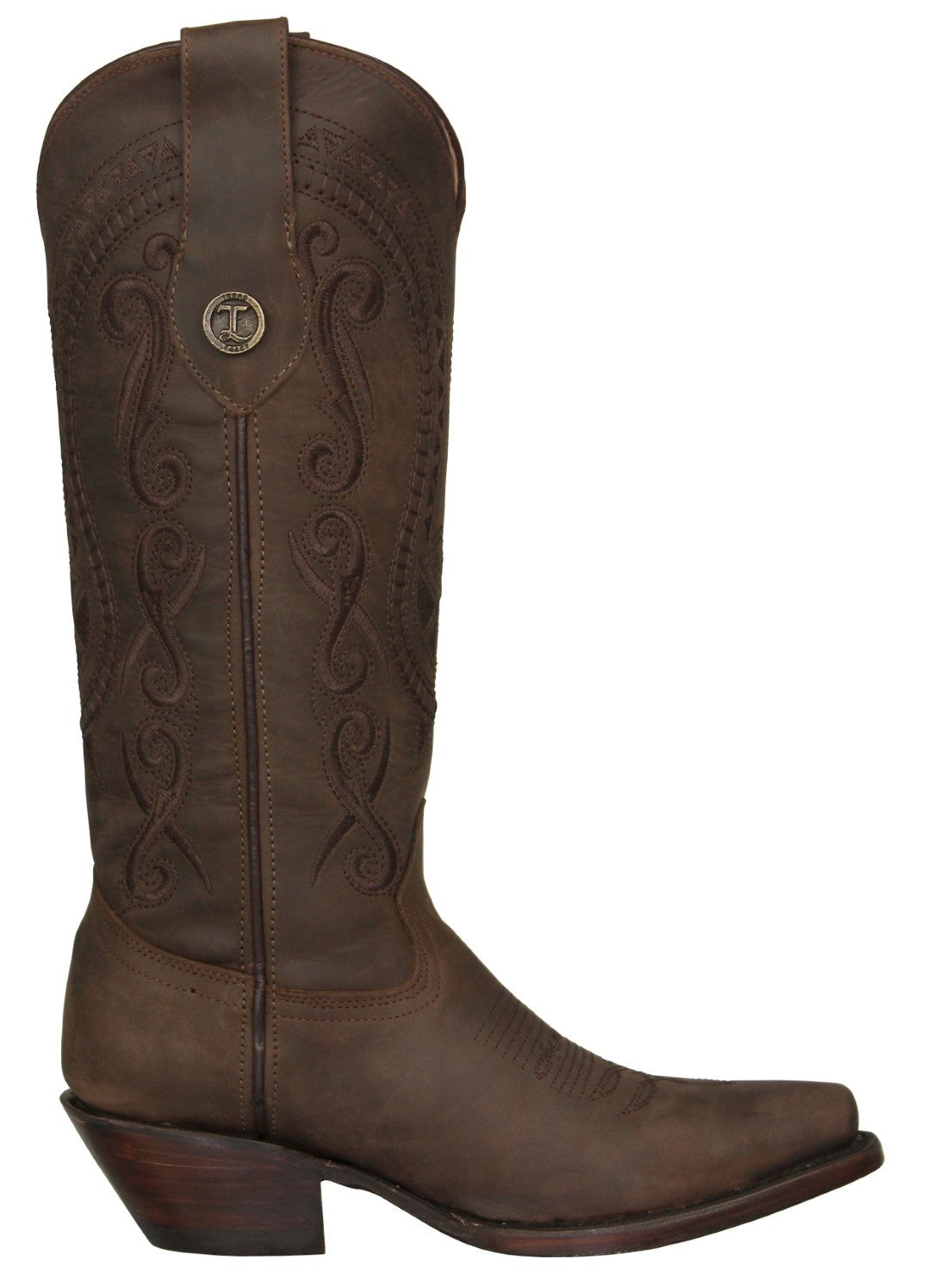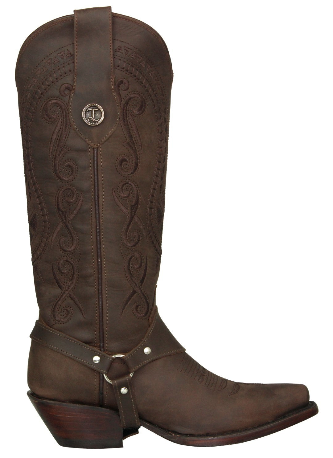 Womens Jane Brown Tall Western Boots Leather Removable Strap - Snip Toe