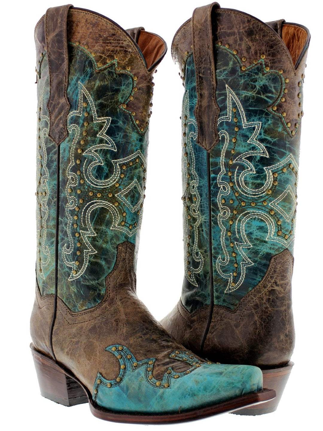 Womens Katy Baby Turquoise Cowboy Boots Leather - Snip Toe