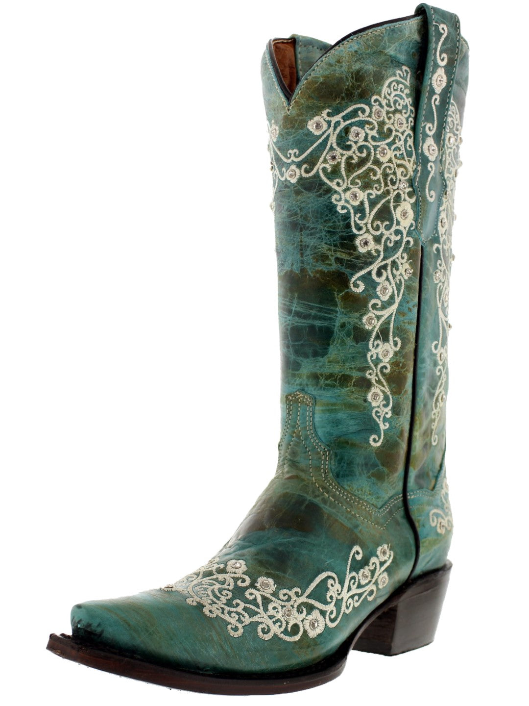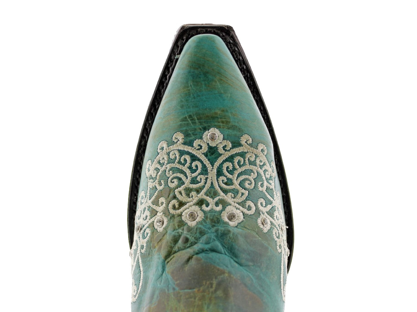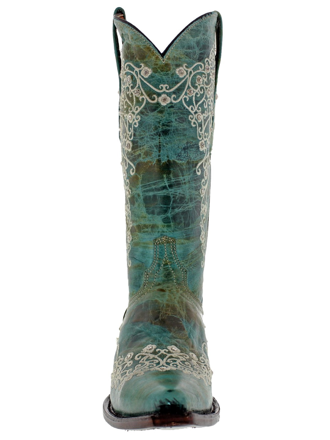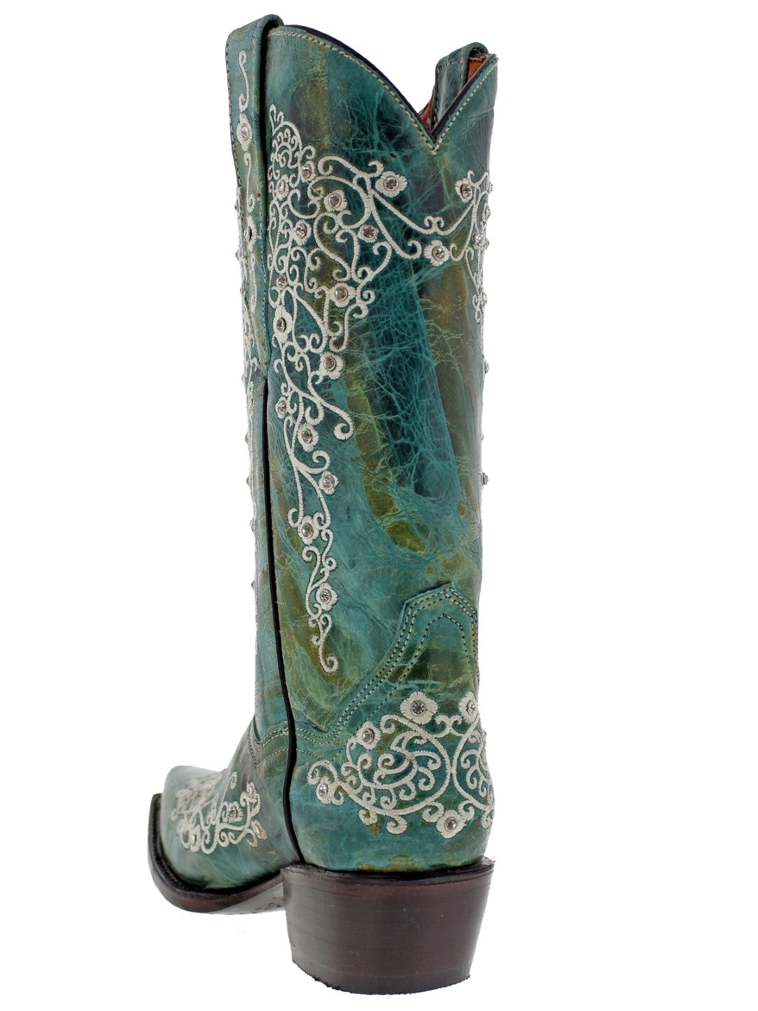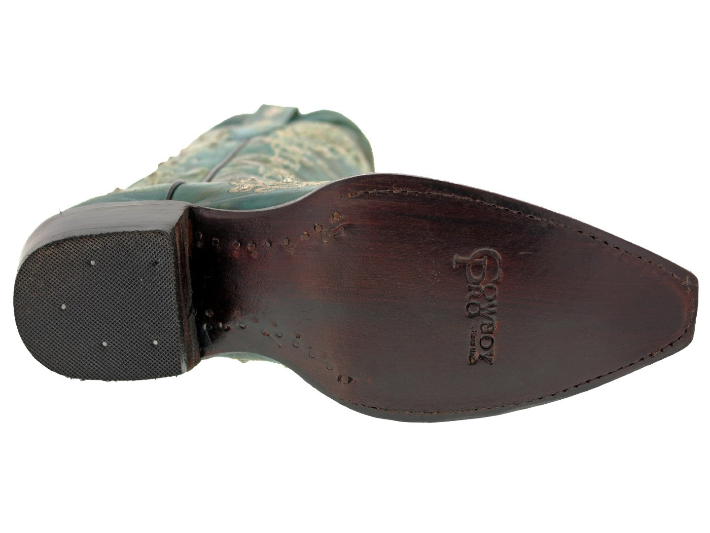 Womens Stella Turquoise Leather Cowboy Boots - Snip Toe