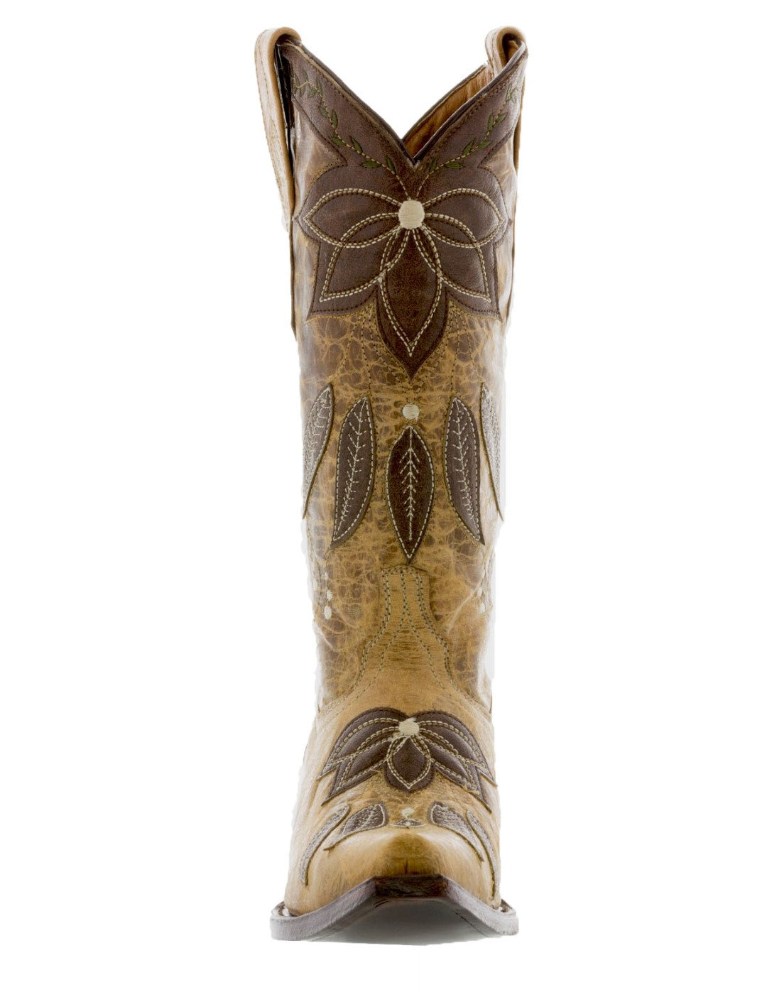 Womens Summer Sand & Red Leather Cowboy Boots - Snip Toe
