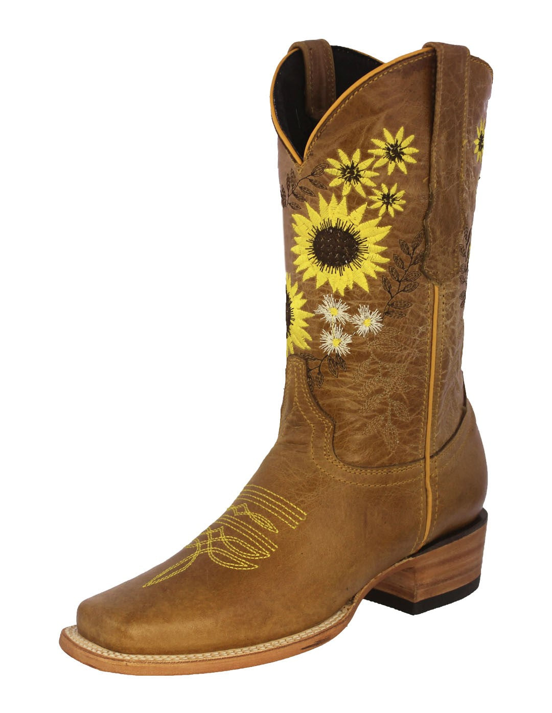 Womens Velvet Honey Brown Western Boots Leather - Square Toe