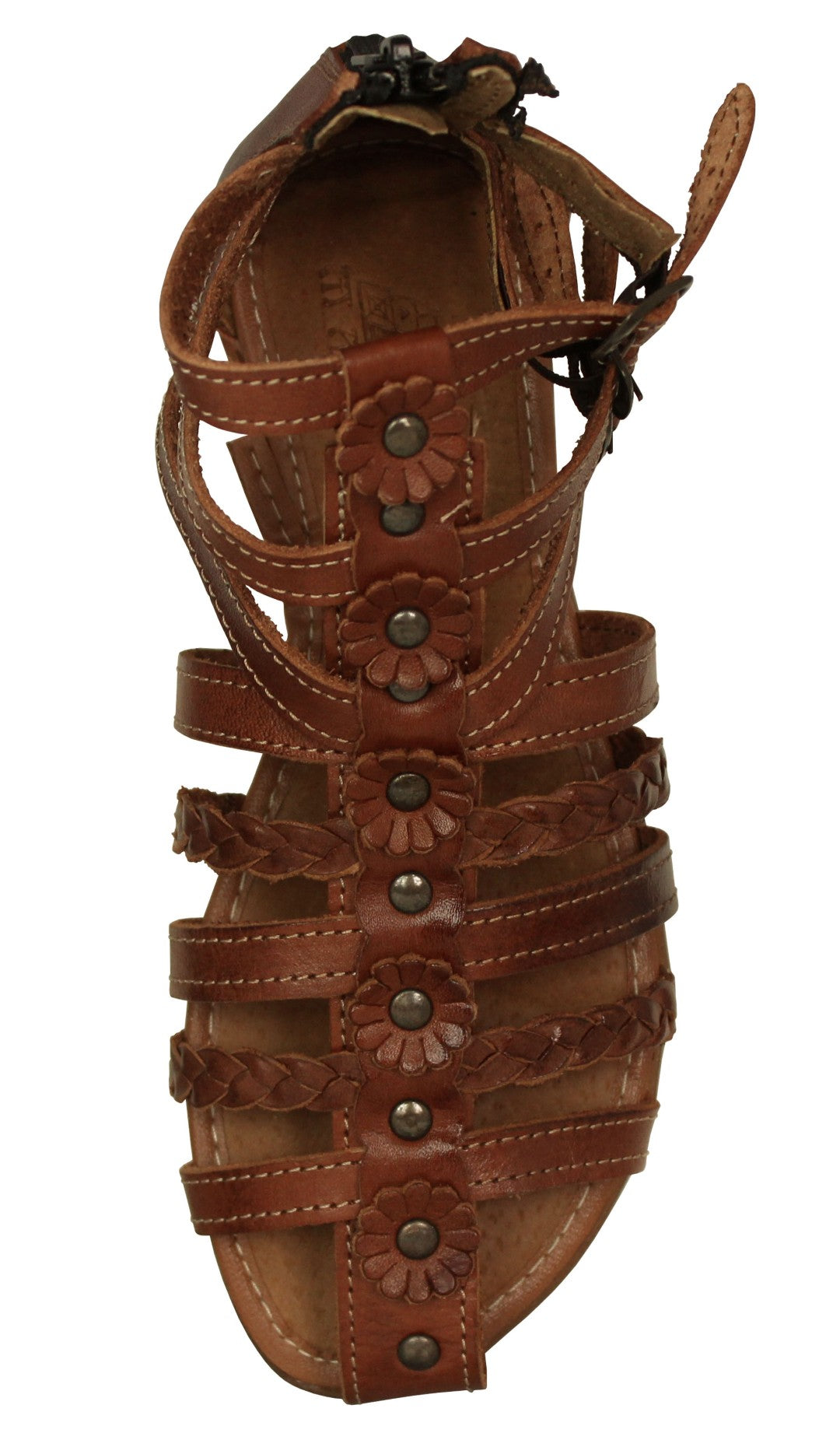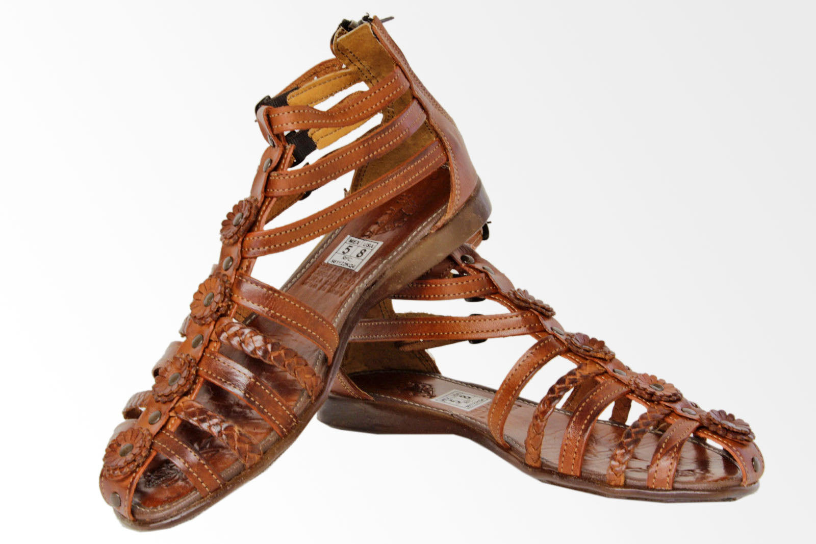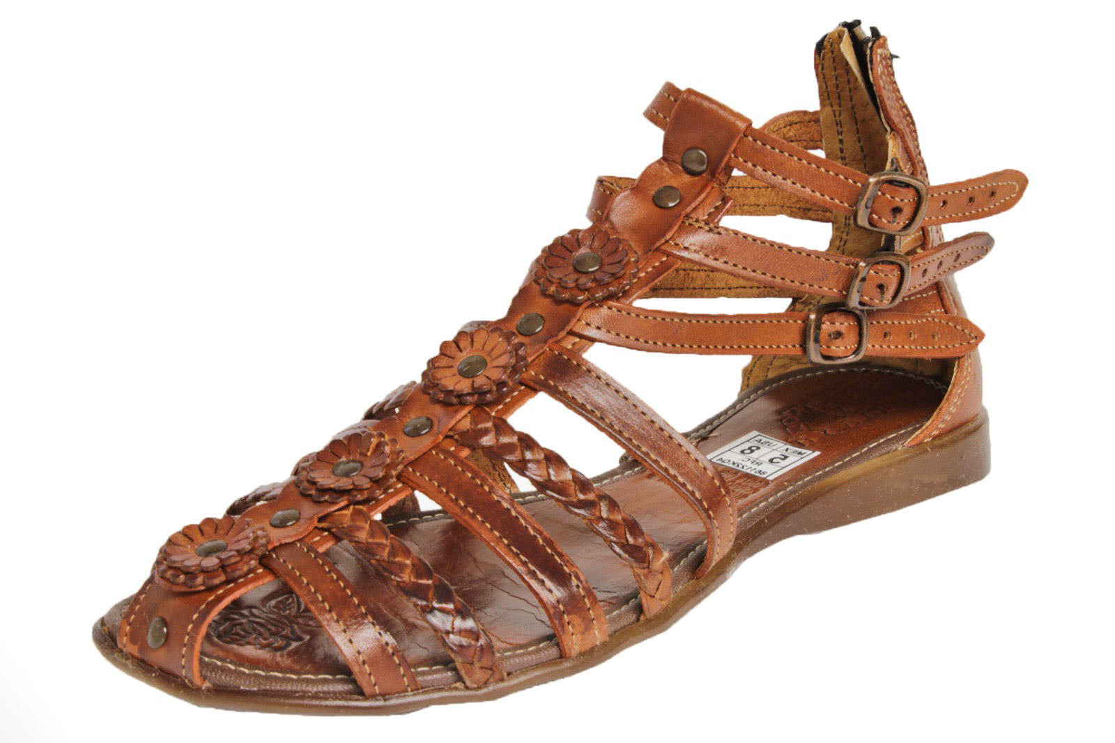 Womens Authentic Huaraches Real Leather Sandals Flowers Cognac - #226