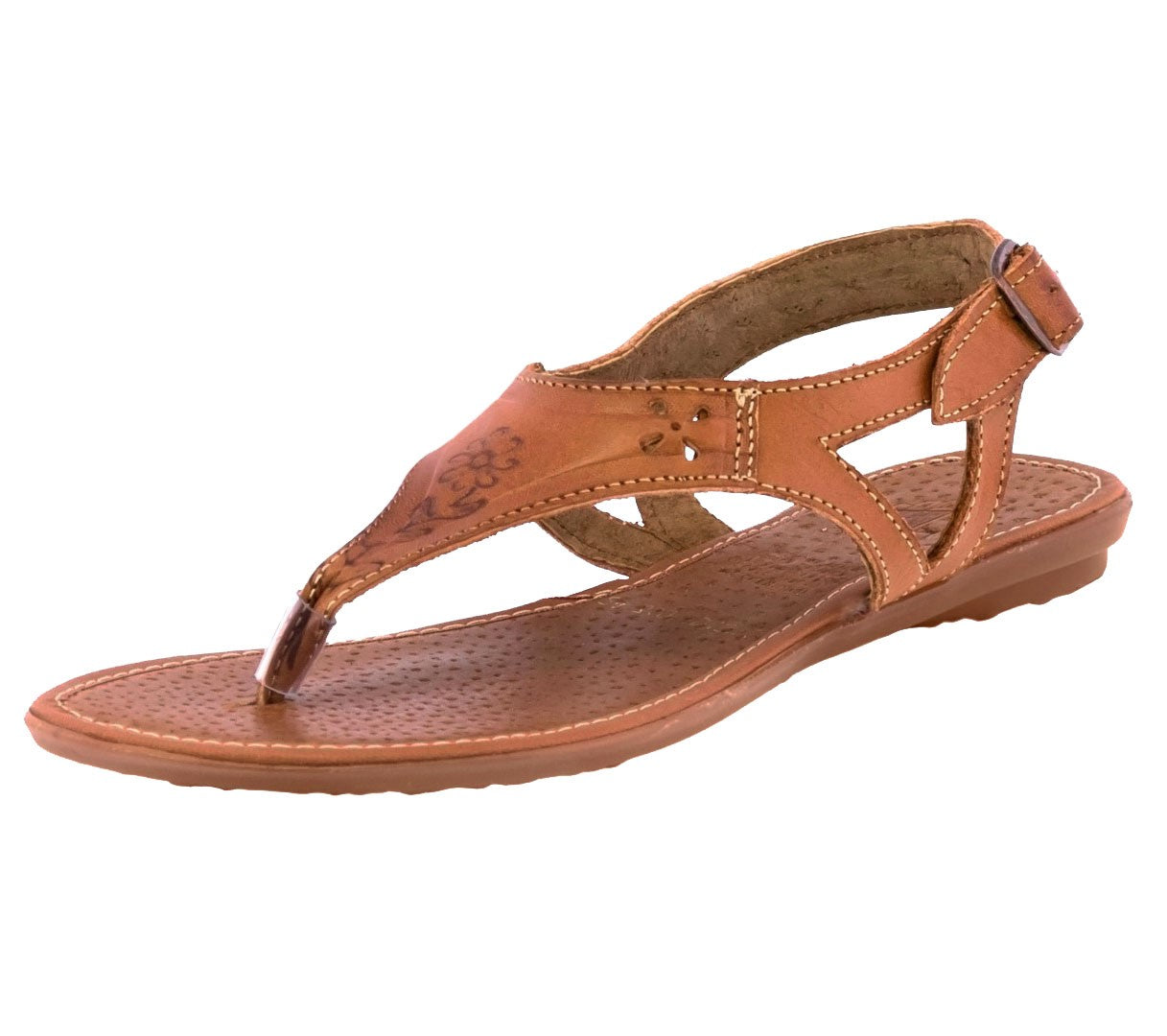 Womens Authentic Huaraches Real Leather Sandals T-Strap Light Brown - #542