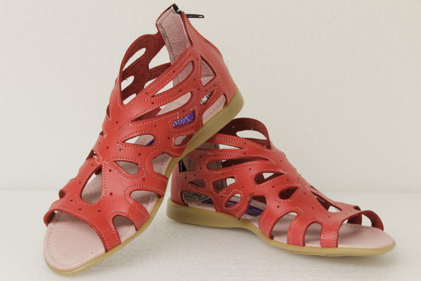 Womens Authentic Huaraches Real Leather Sandals Zipper Red - #202