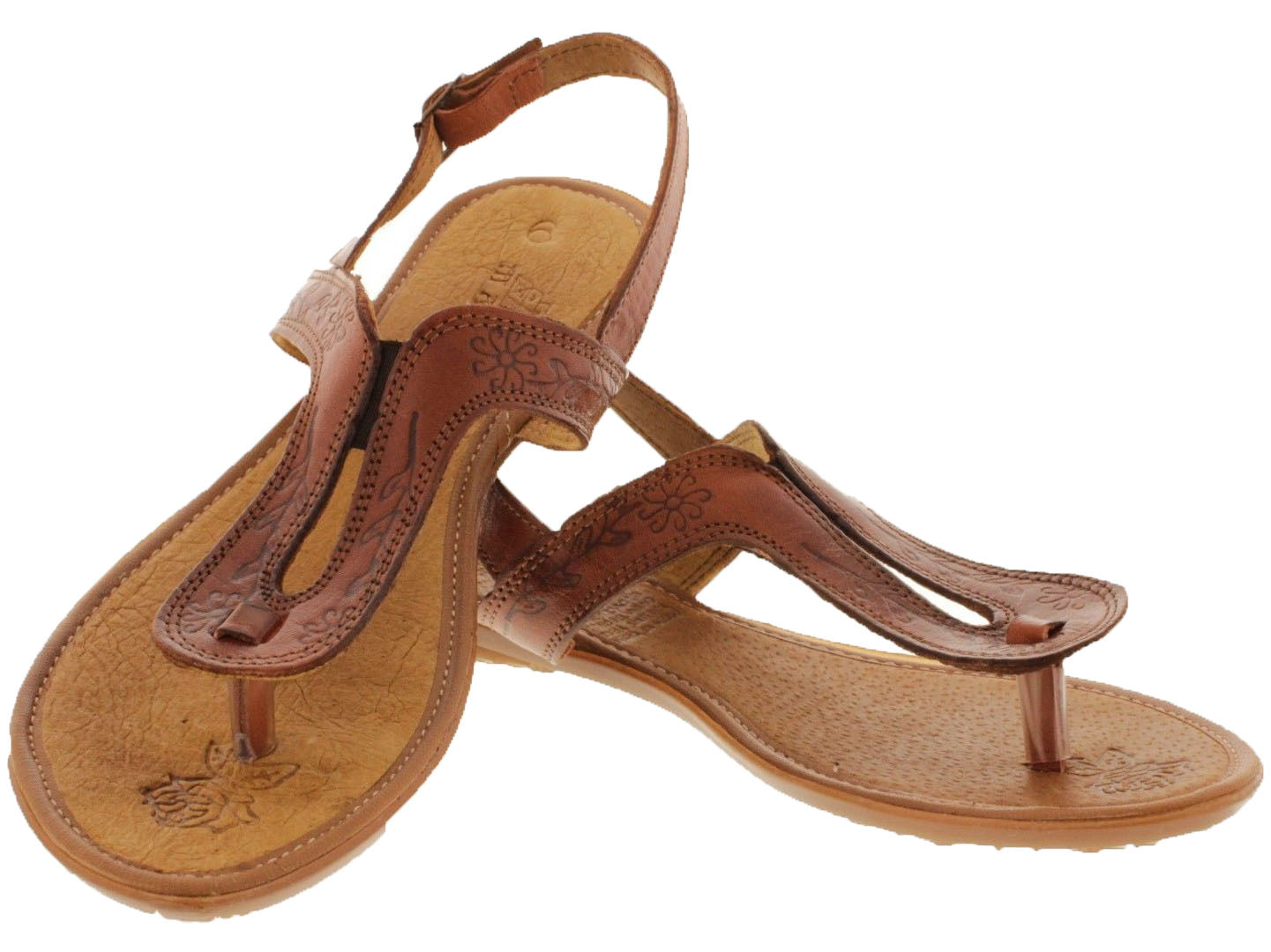 Womens Authentic Huaraches Real Leather Sandals T-Strap Cognac - #549