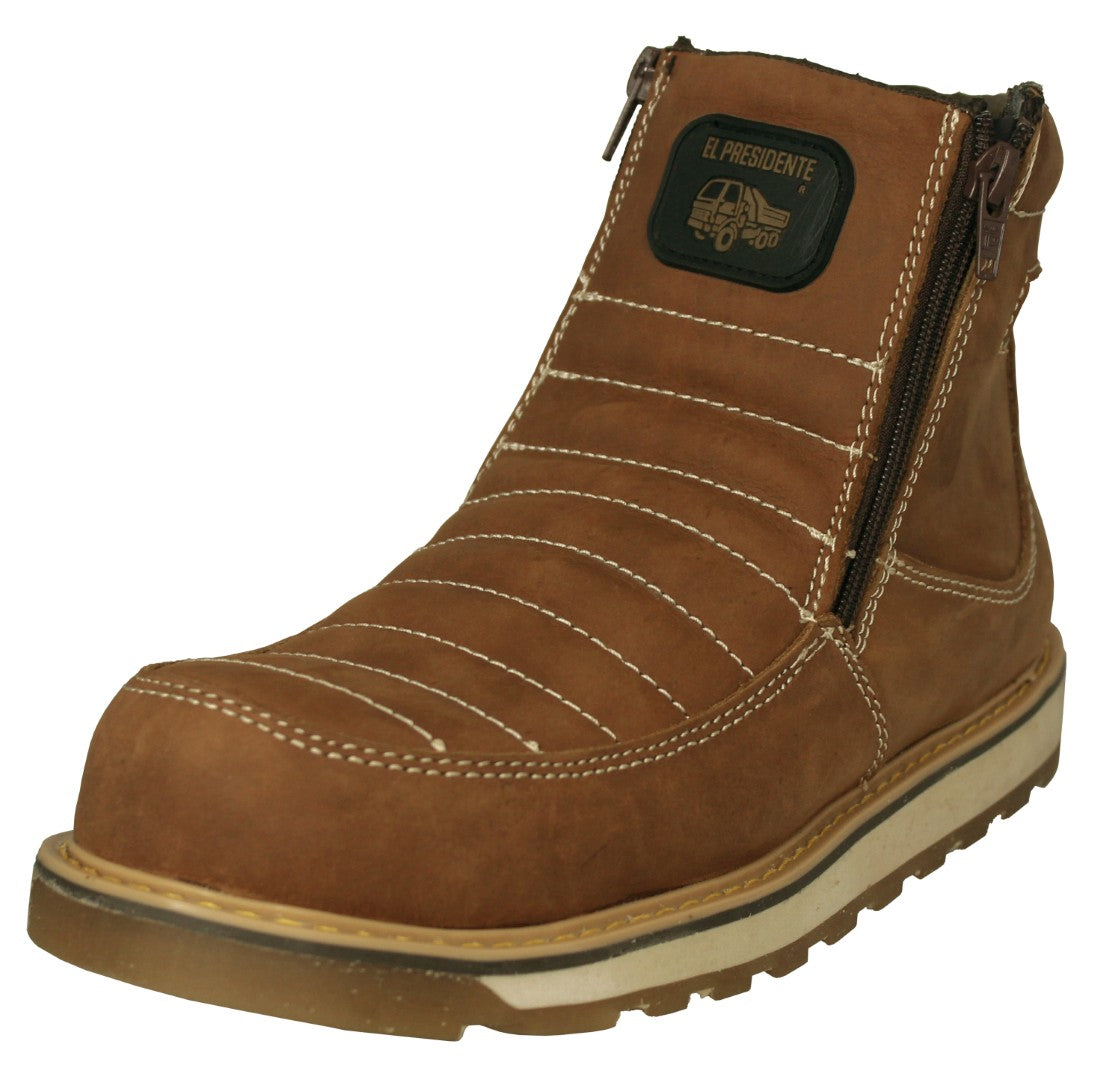 Mens 300W Light Brown Work Boots Leather Zipper - Soft Toe
