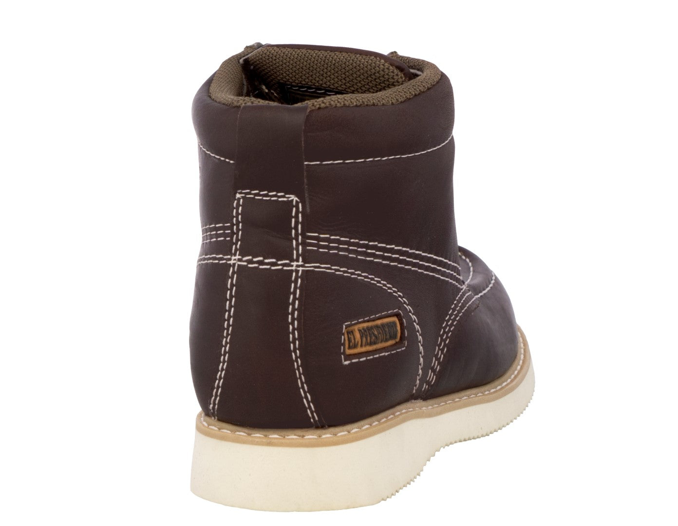 Mens Burgundy Work Boots Leather Slip Resistant Lace Up Soft Toe - #650RA