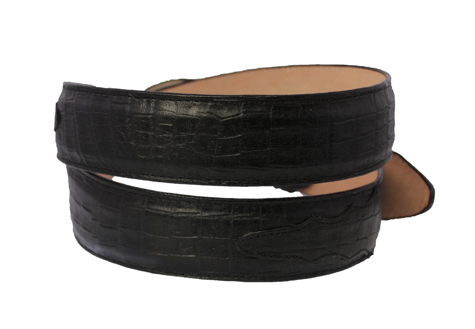 Black #120B Crocodile Belly Print Leather Belt - Removable Buckle
