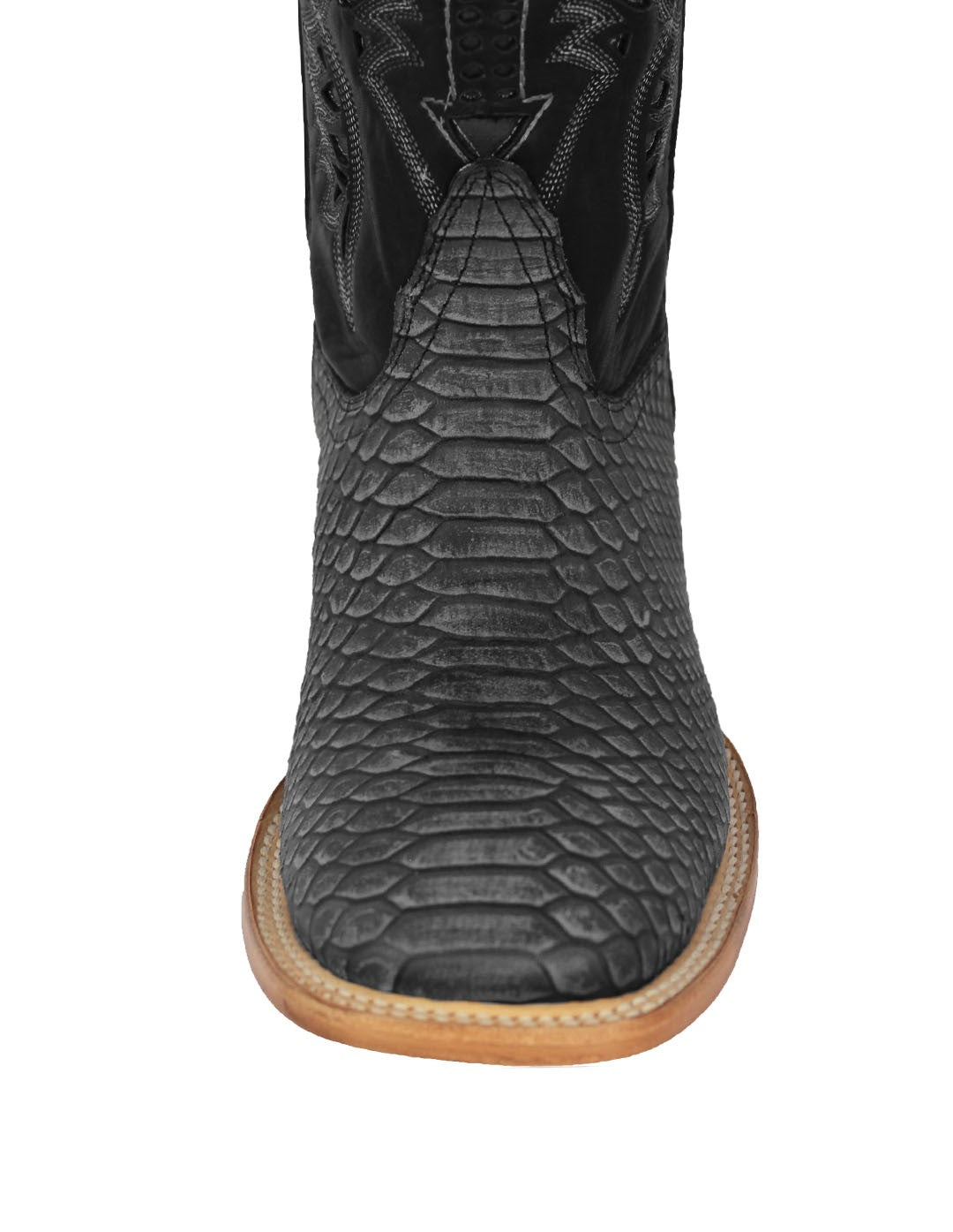 Mens Gray Snake Print Leather Cowboy Boots - Square Toe